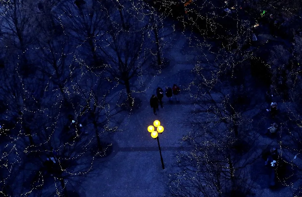 People walk under trees decorated with Christmas lights at the Old Town Square in Prague, Czech Republic, December 1, 2019. (Photo by David W. Cerny/Reuters)