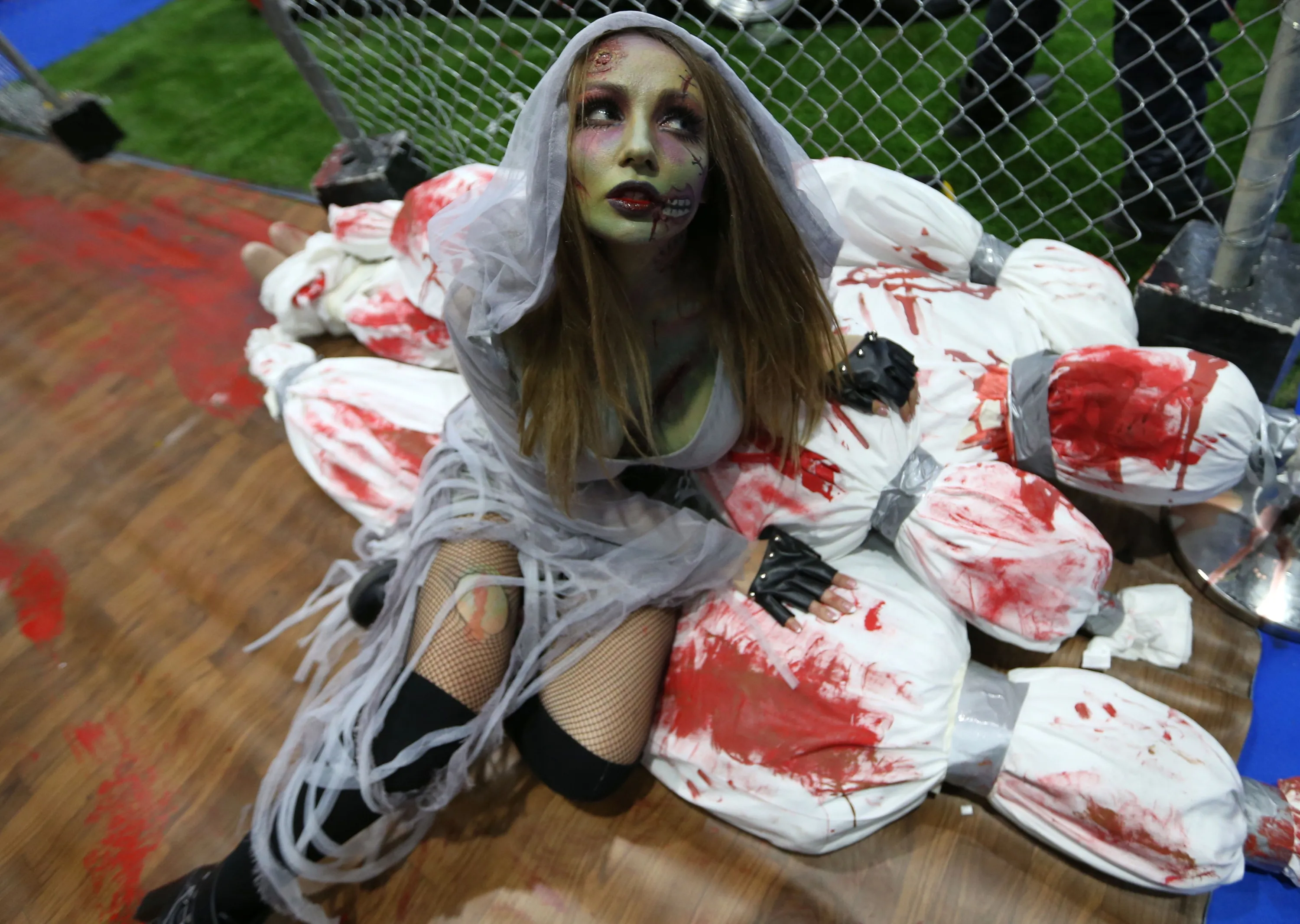 A guest dressed as a zombie attends the Middle East Film & Comic Con (MEFCC) in Gulf emirate of Dubai, United Arab Emirates, 11 April 2019. The event runs until 13 April 2019. (Photo by Ali Haider/EPA/EFE)
