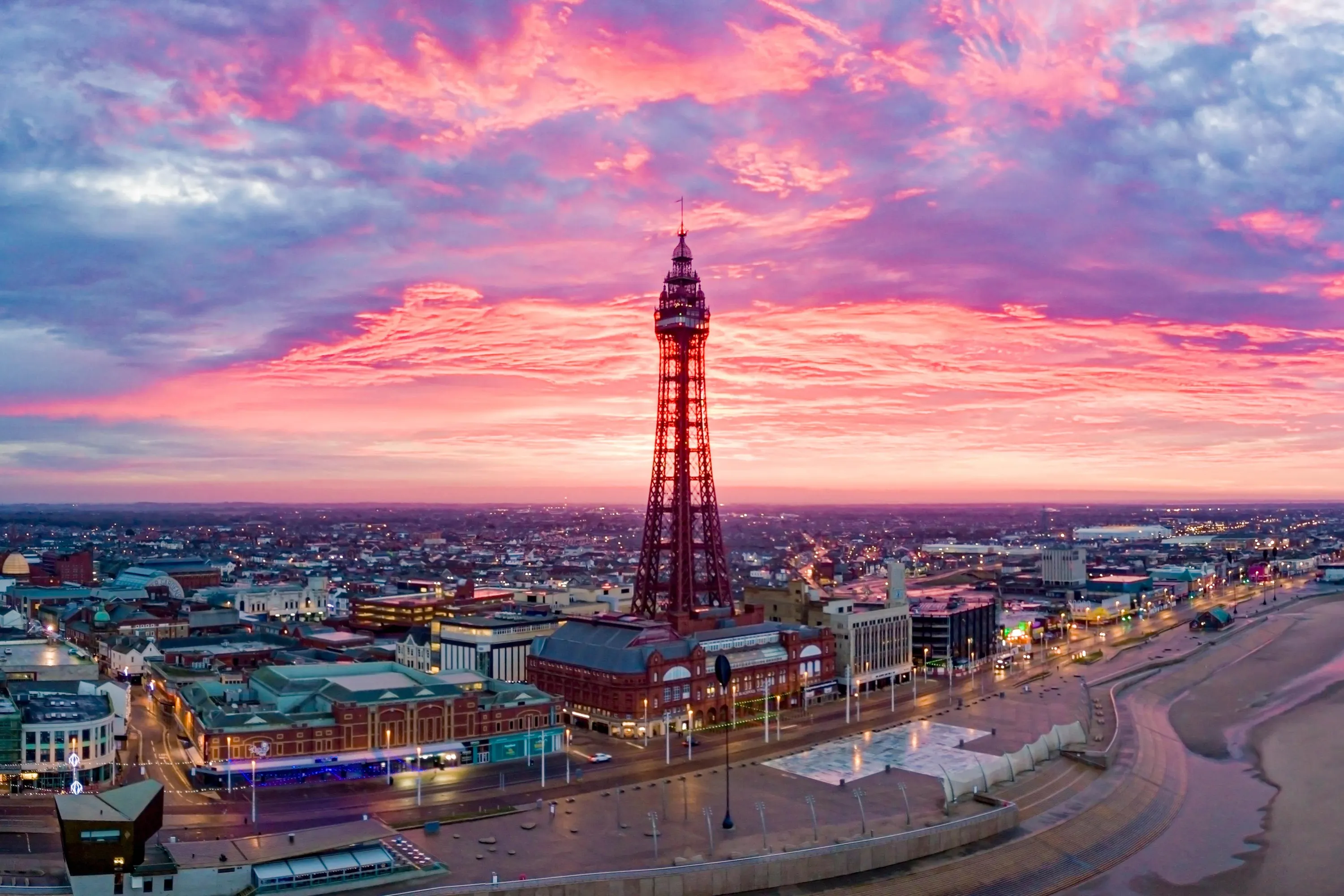 A stunning sunrise over Blackpool, England on December 30, 2019 heralded a mild and largely dry end to the year, though there is a chance of rain farther north. (Photo by Stephen Cheatley/BAV MEDIA)