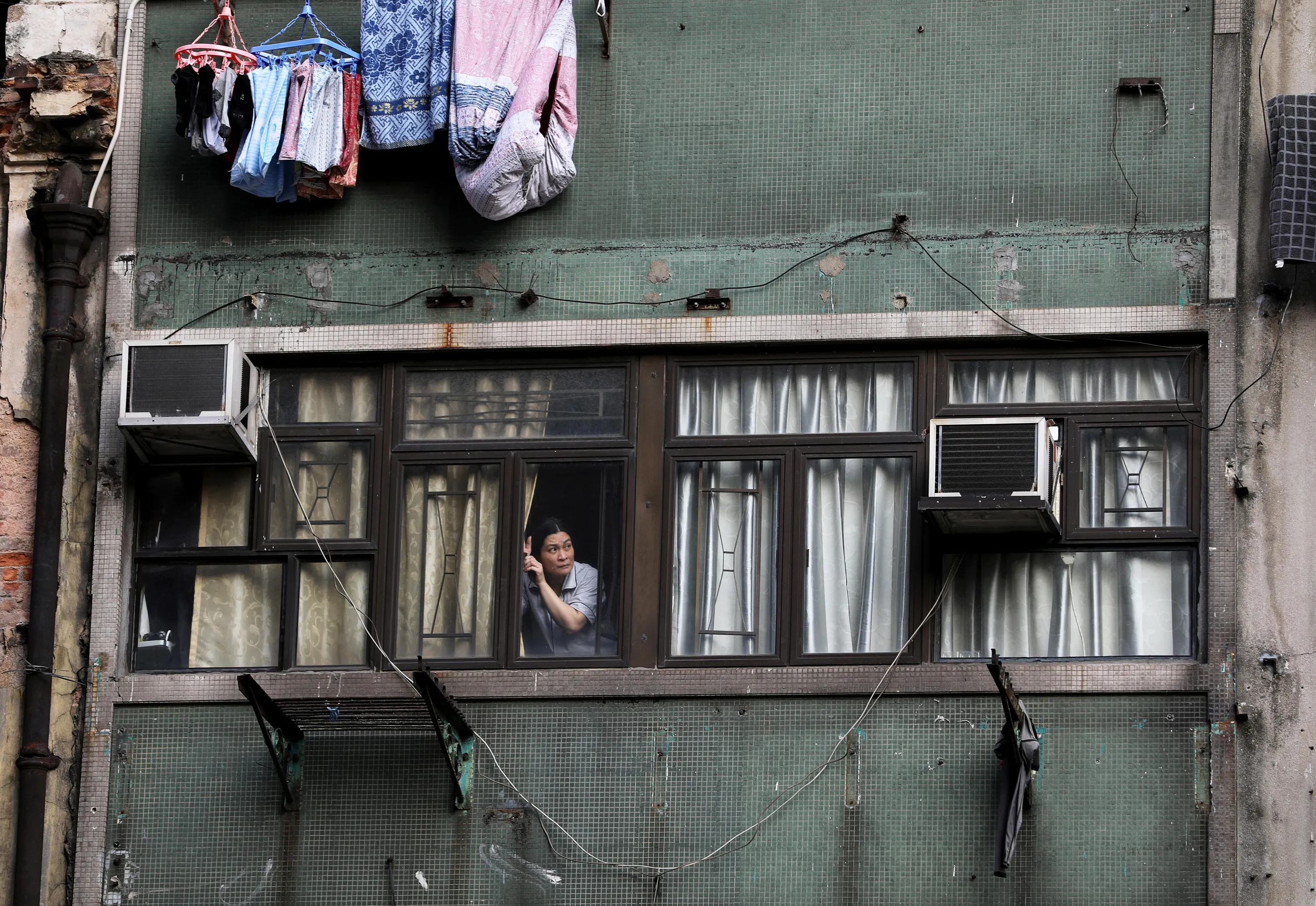 A woman looks out of a window during an anti-government protest in Hong Kong, October 20, 2019. (Photo by Ammar Awad/Reuters)