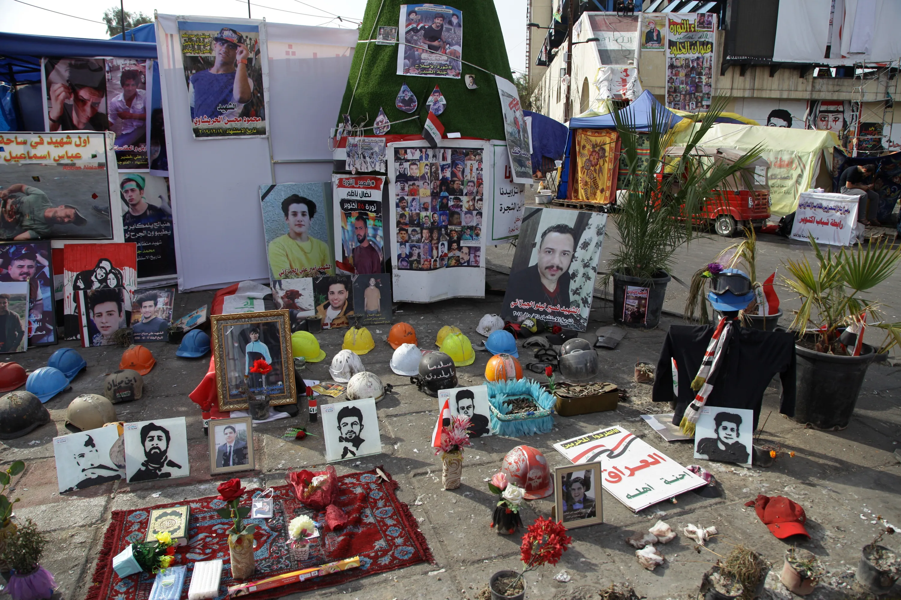 Posters of protesters who have been killed in anti-government demonstrations and their belongings are displayed in Tahrir Square, in Baghdad, Iraq, Monday, December 30, 2019. (Photo by Khalid Mohammed/AP Photo)