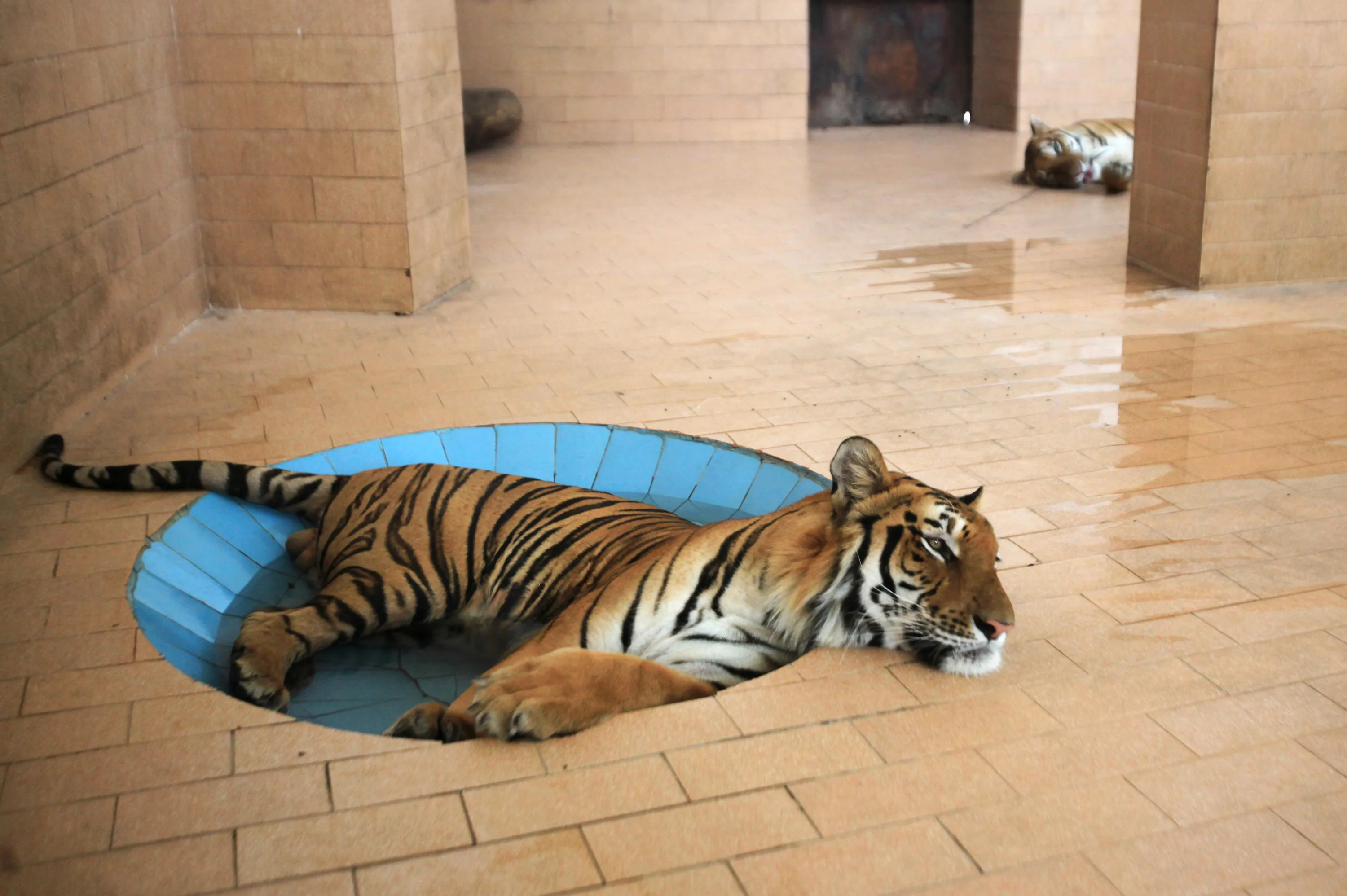 A tiger lays in a pool of water inside a cage at a zoo, during hot and humid weather in Lahore, Pakistan on June 10, 2019. (Photo by Mohsin Raza/Reuters)