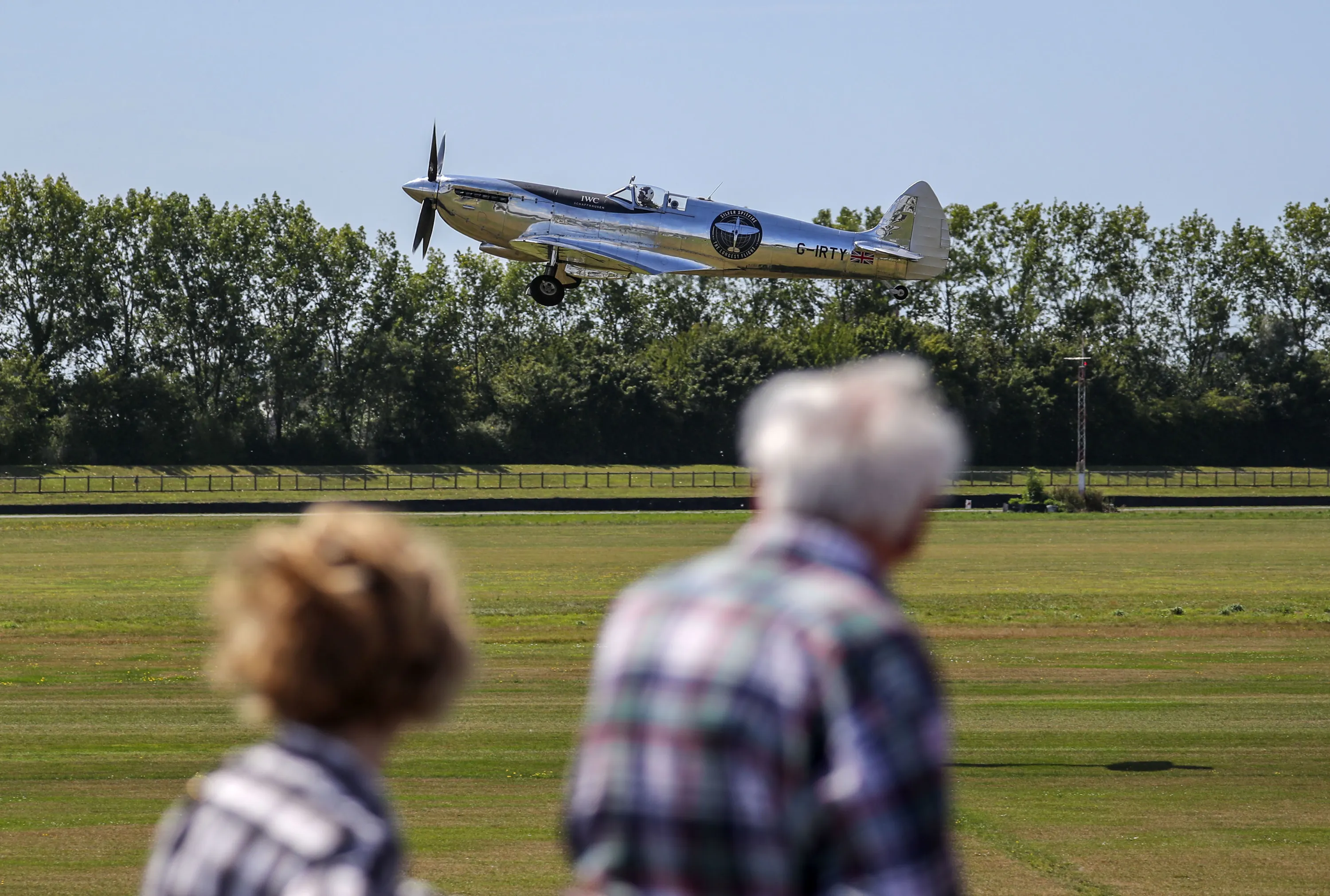 A restored MK IX Spitfire takes off from Goodwood Aerodrome in Goodwood, England, Monday, August 5, 2019. A restored World War II Spitfire has taken off from an English aerodrome on the first leg of a planned 27,000 mile (43,000 kilometer) trip around the globe. Pilots Steve Brooks and Matt Jones hope to circle the world in about four months, with stops in 30 countries. Brooks says his biggest worry was the weather – and “landing is always the tricky part”. (Photo by Steve Parsons/PA Wire via AP Photo)