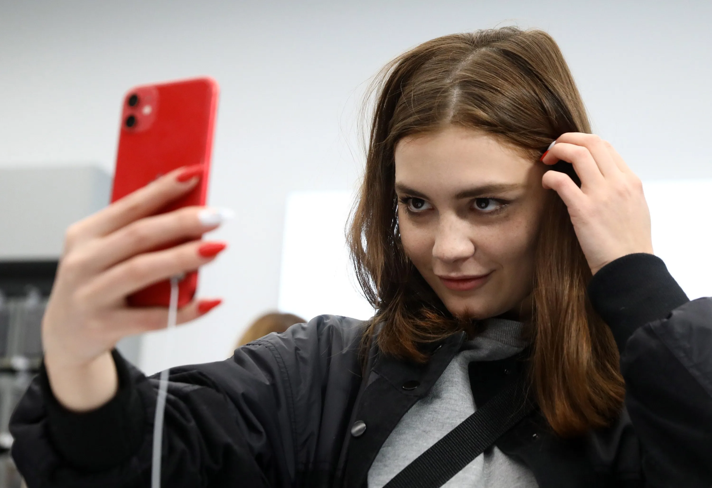 A customer takes a selfie at a re:Store shop in Tverskaya Street in Moscow, Russia on September 20, 2019 as Apple launches iPhone 11, iPhone 11 Pro, and iPhone 11 Pro Max sales in Russia. (Photo by Mikhail Tereshchenko/TASS)