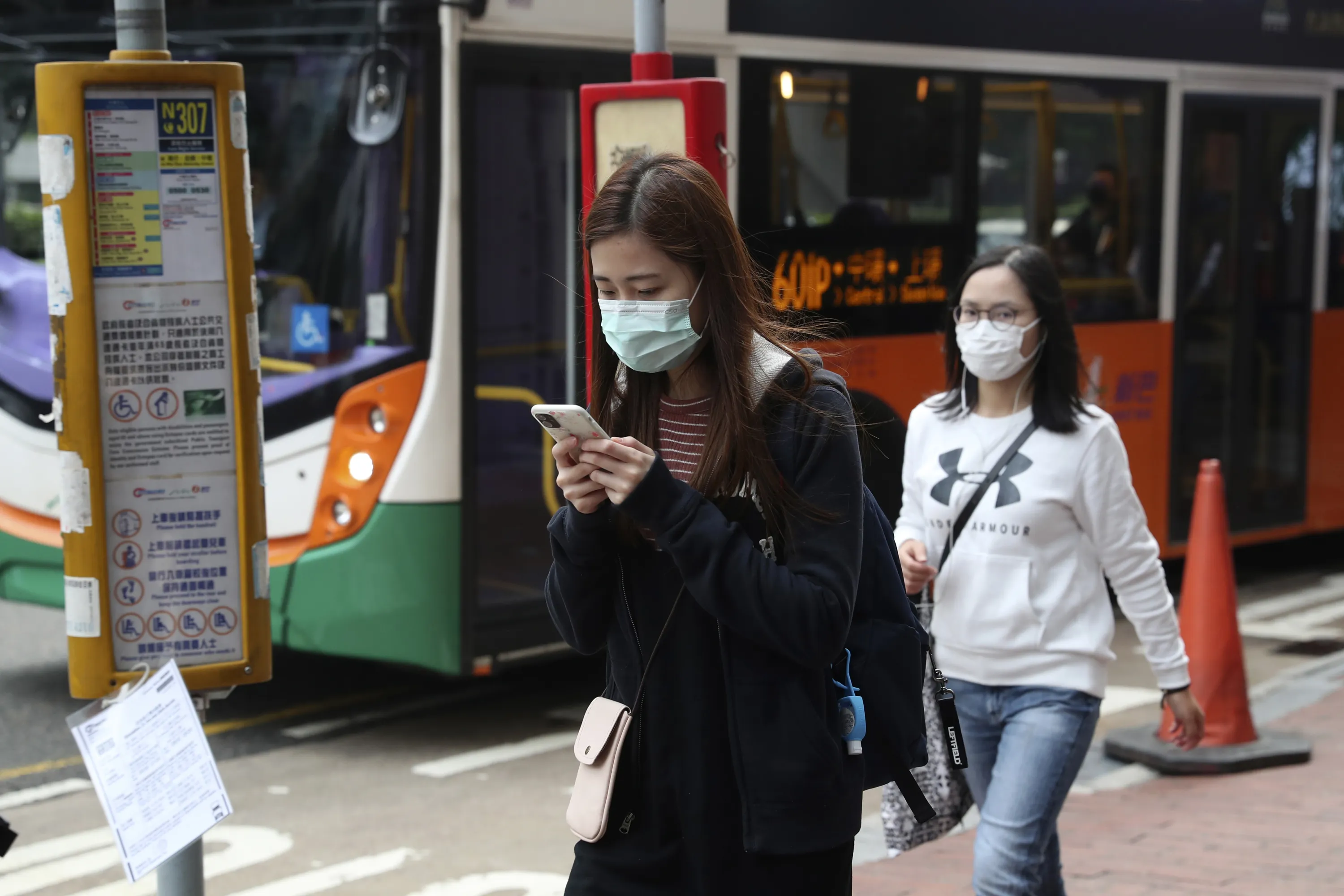 People wear protective face masks on a street in Hong Kong, Friday, January 24, 2020. China closed off a city of more than 11 million people Thursday, halting transportation and warning against public gatherings, to try to stop the spread of a deadly new virus that has sickened hundreds and spread to other cities and countries in the Lunar New Year travel rush. (Photo by Achmad Ibrahim/AP Photo)