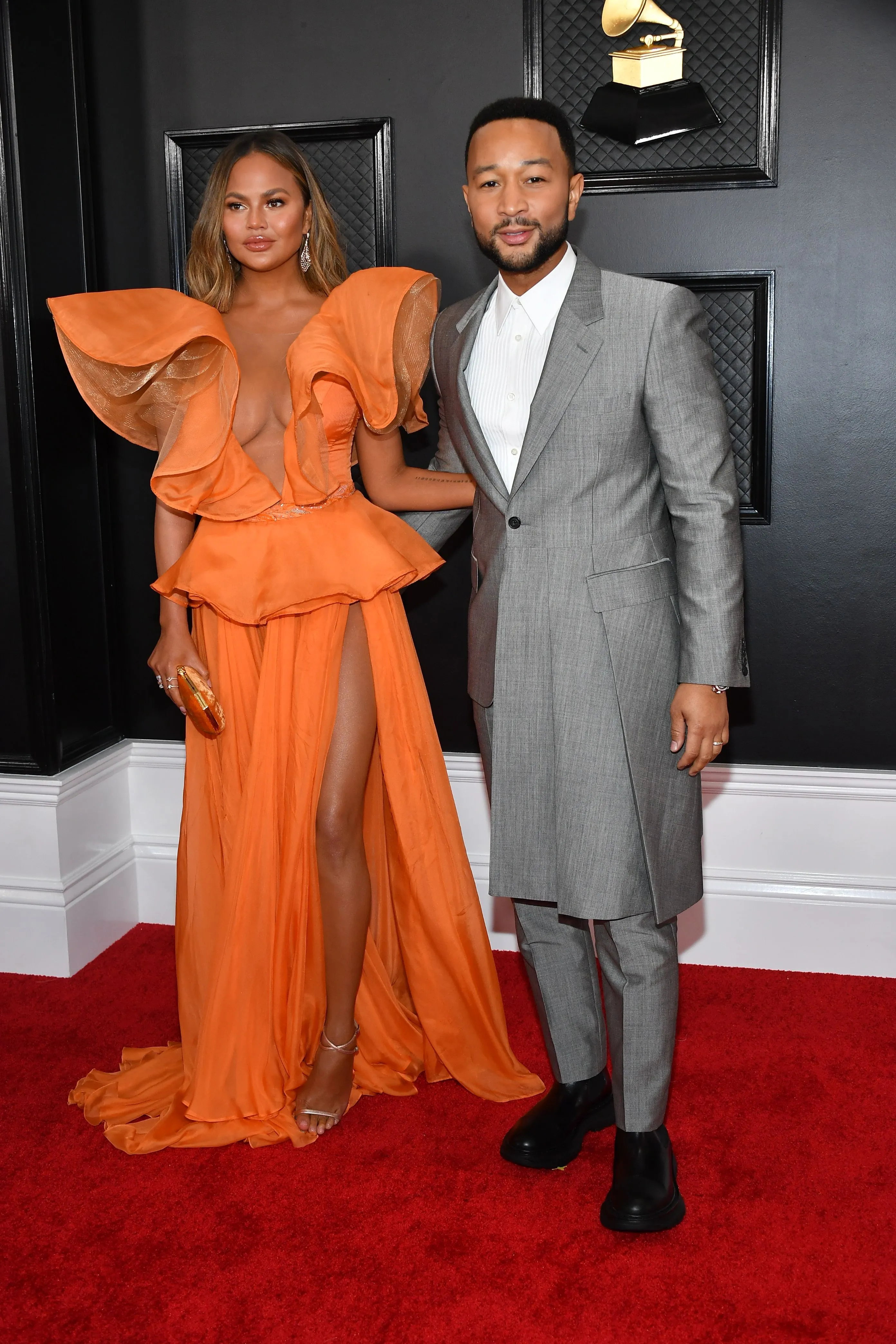Chrissy Teigen and John Legend attends the 62nd Annual GRAMMY Awards at Staples Center on January 26, 2020 in Los Angeles, California. (Photo by Amy Sussman/Getty Images)