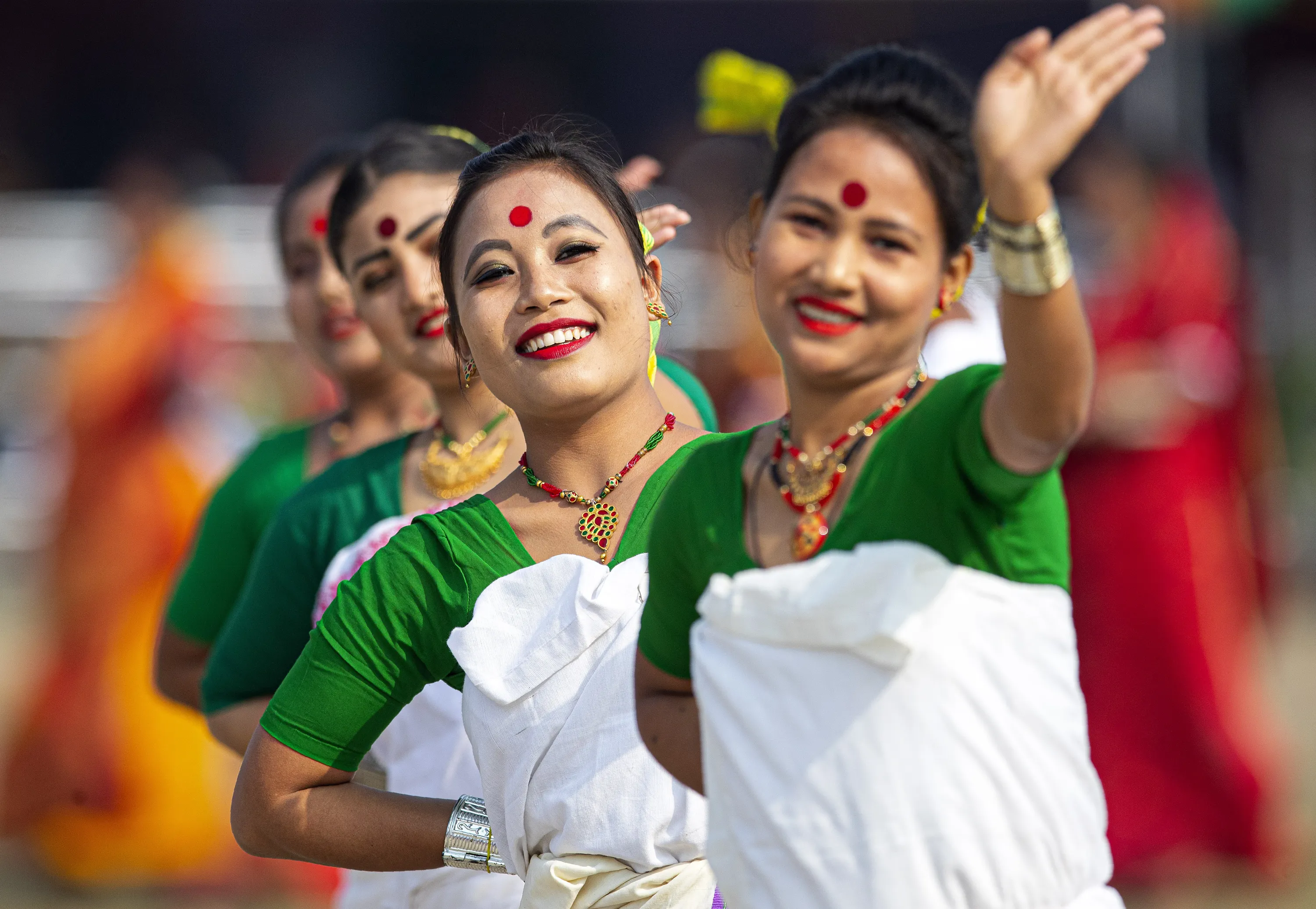 Indian tribal Deuri women in traditional attire perform to mark Republic Day in Gauhati, India, Sunday, January 26, 2020. (Photo by Anupam Nath/AP Photo)