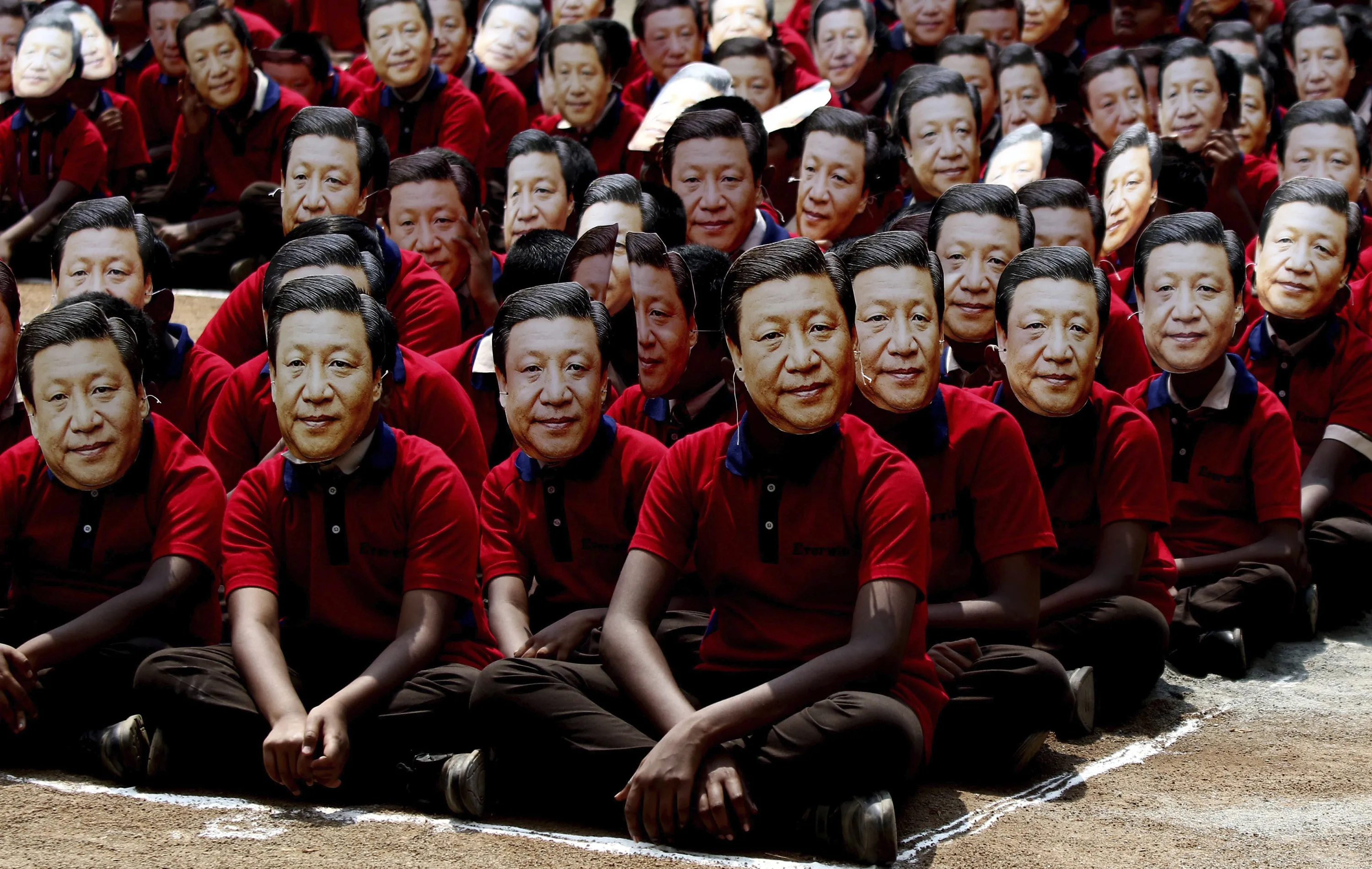 Indian school children wear face masks of Chinese President Xi Jinping to welcome him on the eve of his visit in Chennai, India, Thursday, October 10, 2019. Chinese President Xi Jinping is coming to India to meet with Prime Minister Narendra Modi on Friday, just weeks after Beijing supported India's rival Pakistan in raising the issue of New Delhi's recent actions in disputed Kashmir at the U.N. General Assembly meeting. (Photo by R. Parthibhan/AP Photo)