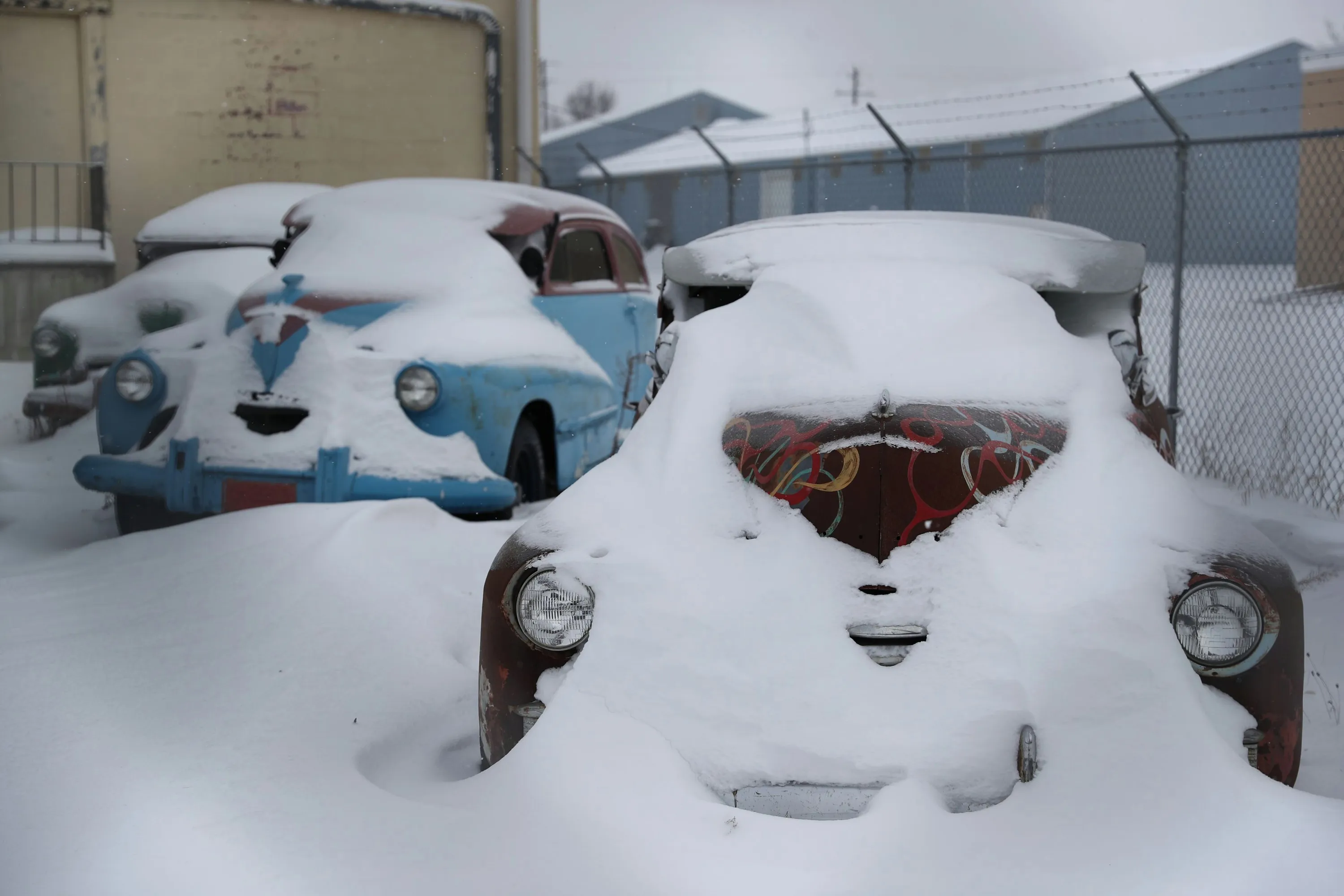 Snow-covered vintage cars are snow-covered in a parking lot after a snow fall at Waterloo, Iowa, U.S., January 19, 2020. (Photo by Ivan Alvarado/Reuters)
