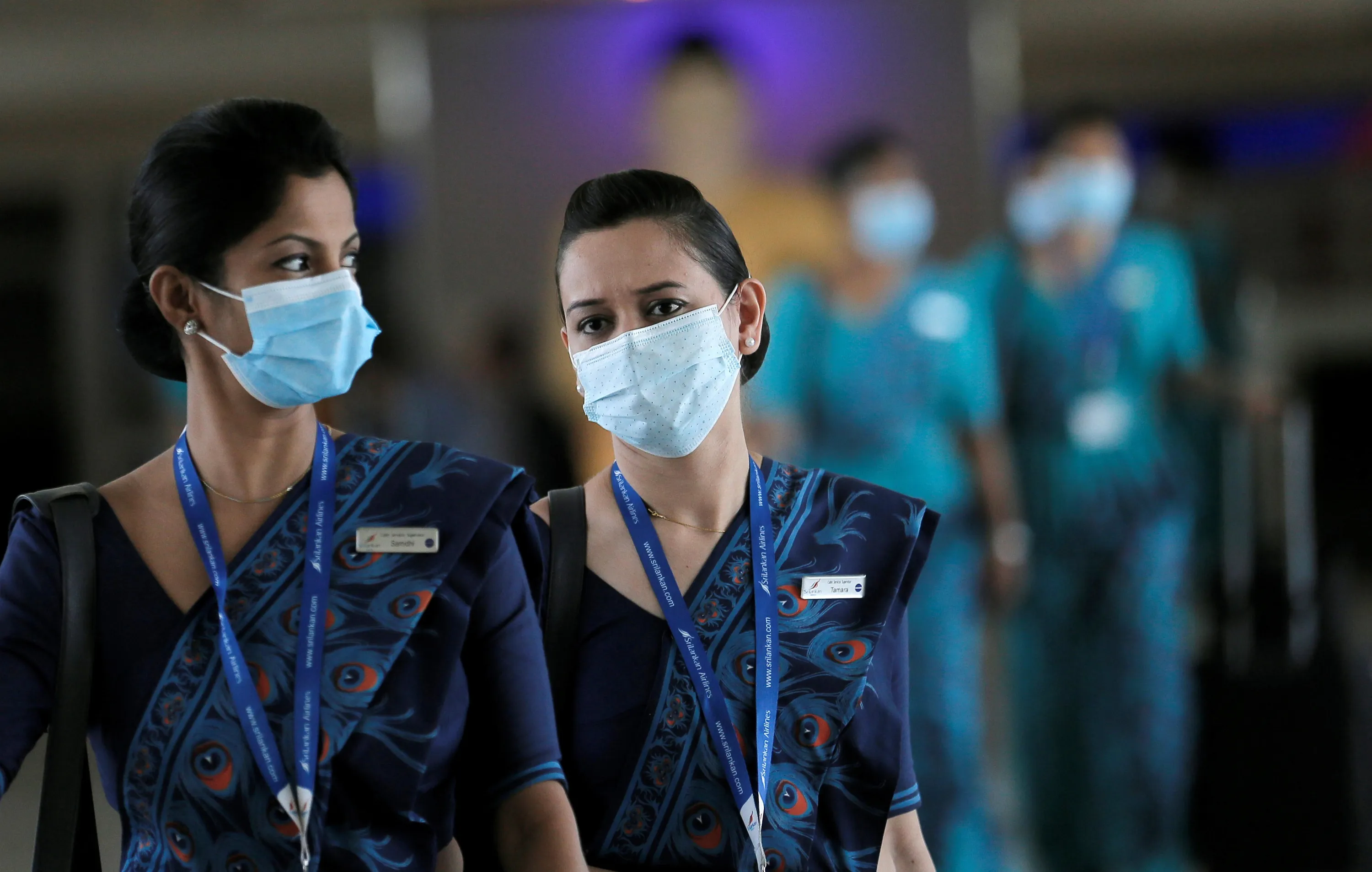 Sri Lankan Airlines staff wear masks at Bandaranaike International Airport after Sri Lanka confirmed the first case of coronavirus in the country, in Katunayake, Sri Lanka on January 30, 2020. (Photo by Dinuka Liyanawatte/Reuters)