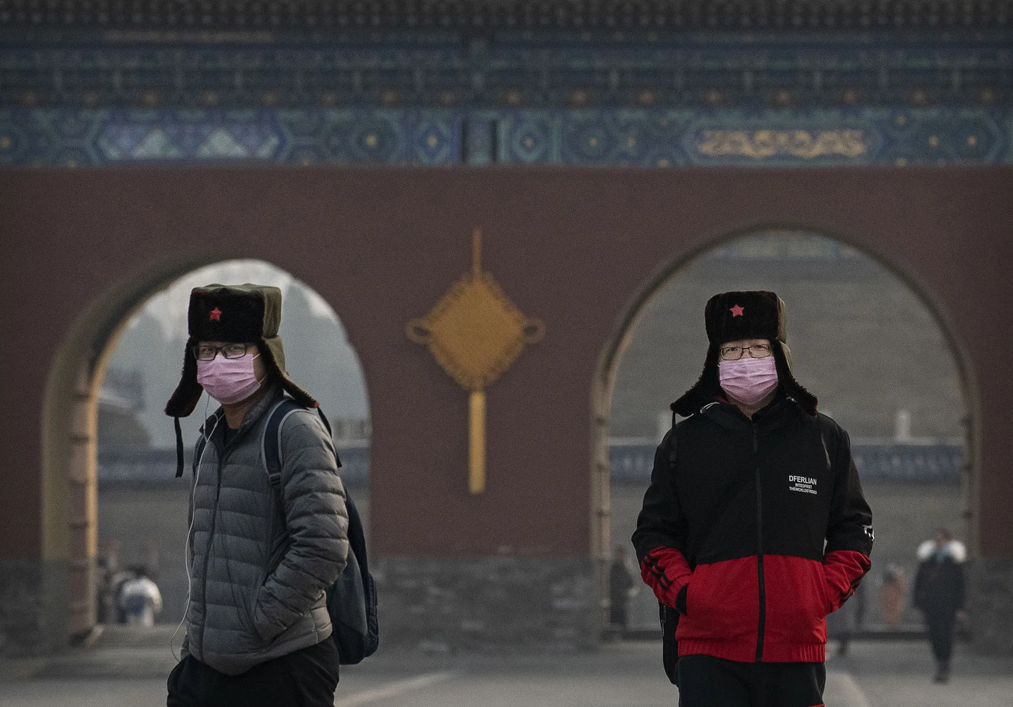 Chinese visitors wear protective masks as they tour the grounds of the Temple of Heaven, which remained open during the Chinese New Year and Spring Festival holiday on January 27, 2020 in Beijing, China. (Photo by Kevin Frayer/Getty Images)