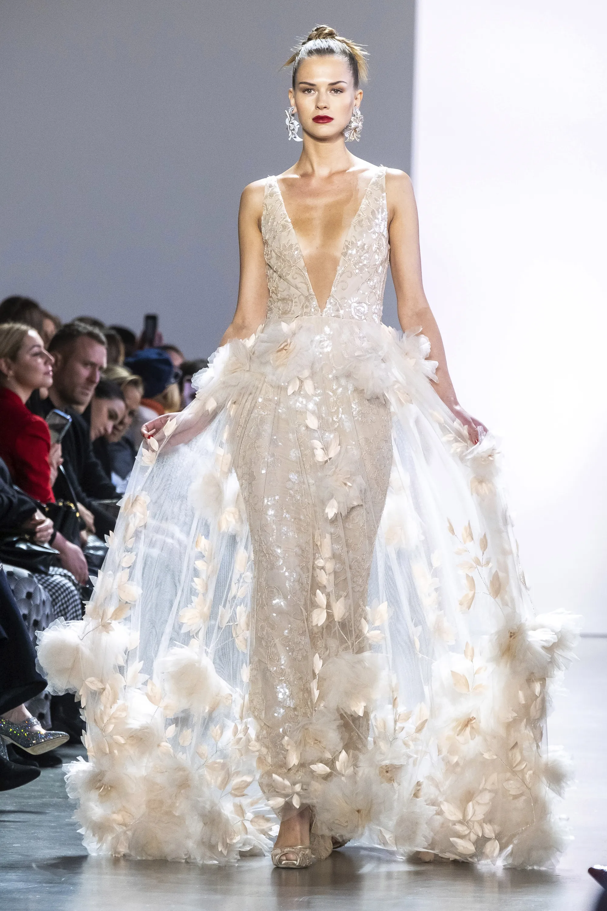 The Badgley Mischka collection is modeled at Spring Studios during NYFW Fall/Winter 2020 on Saturday, February 8, 2020, in New York. (Photo by Charles Sykes/Invision/AP Photo)