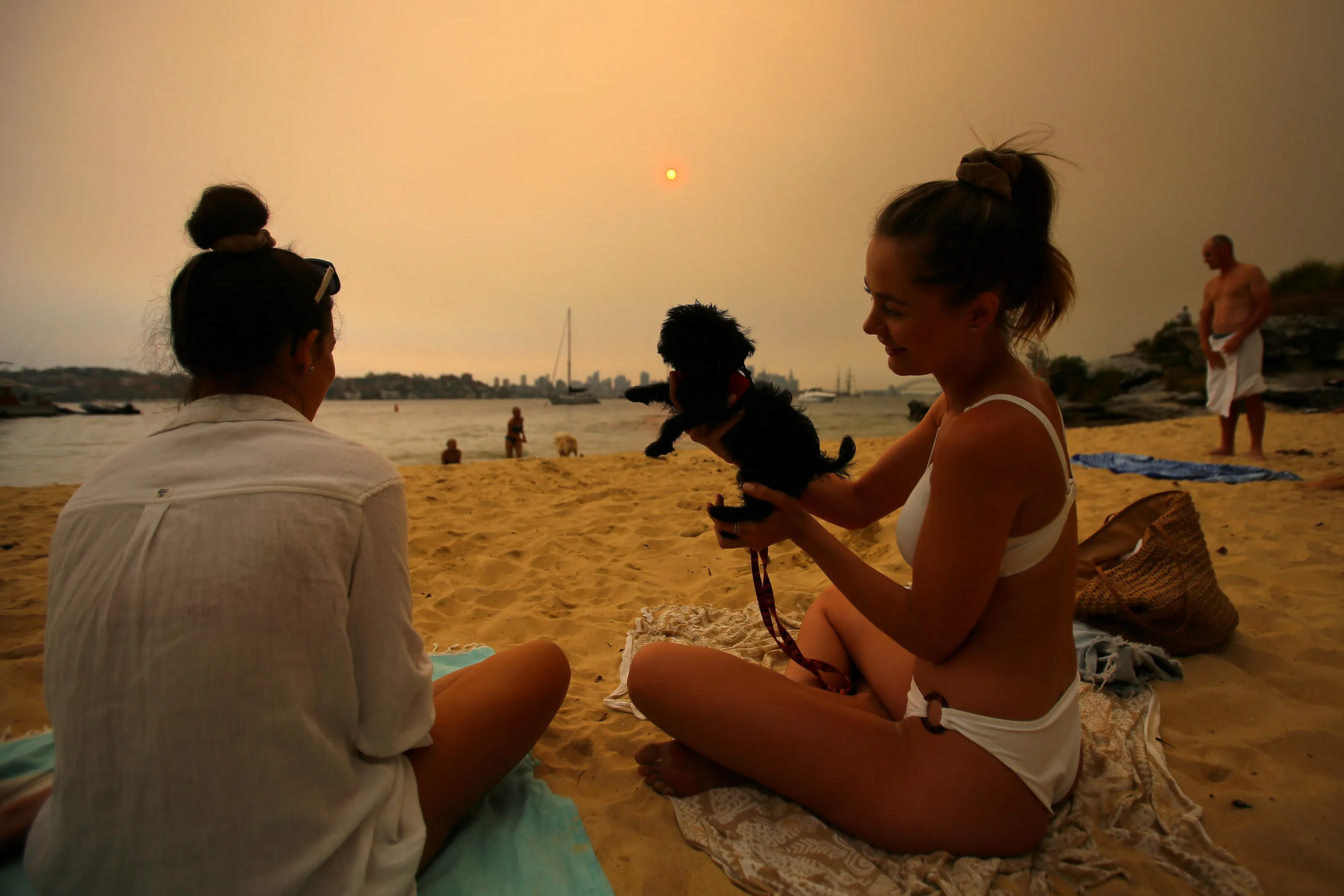 Beachgoers are seen on Milk Beach as smoke haze from bushfires in New South Wales blankets the CBD in Sydney, Australia on December 7, 2019. (Photo by Steven Saphore/AAP Image via Reuters)