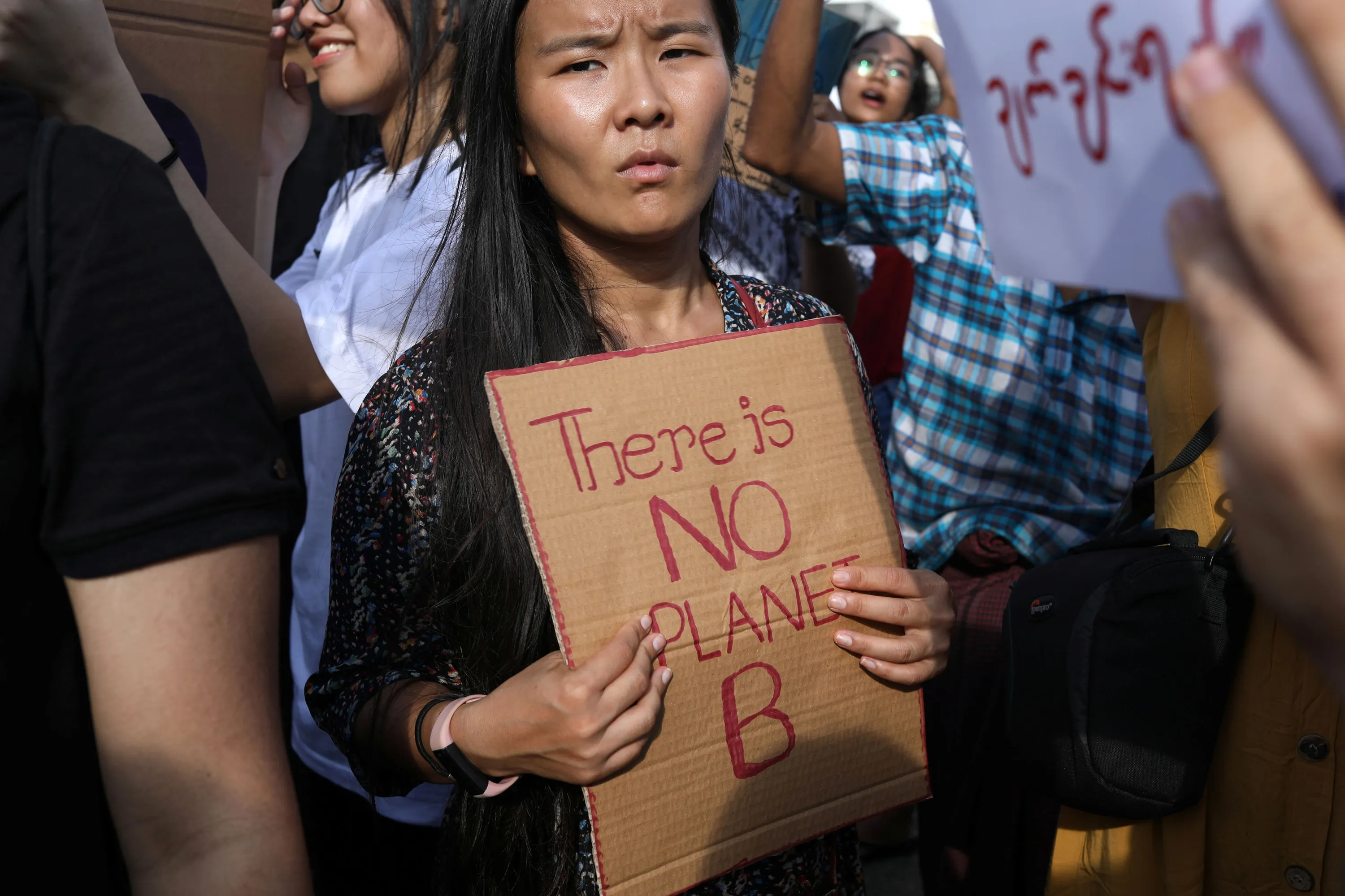 Protesters hold placards as they attend a climate change demonstration in Yangon, Myanmar, September 22, 2019. (Photo by Ann Wang/Reuters)
