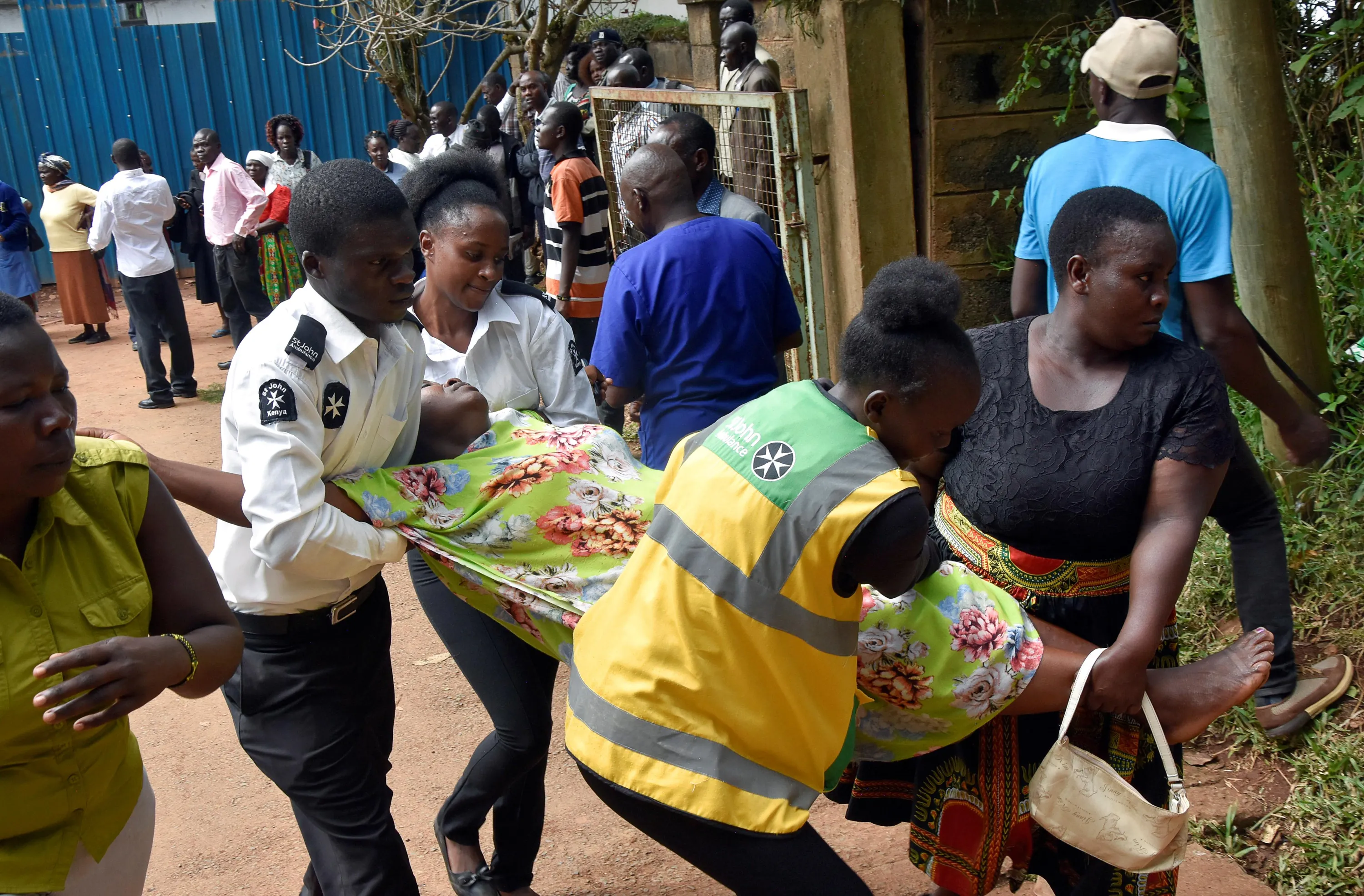Medical staff assist a parent after she identified the body of her child killed in a stampede at the Kakamega Primary School, at the Kakamega County General Teaching & Referral Hospital in Kakamega, Kenya on February 4, 2020. (Photo by James Keyi/Reuters)
