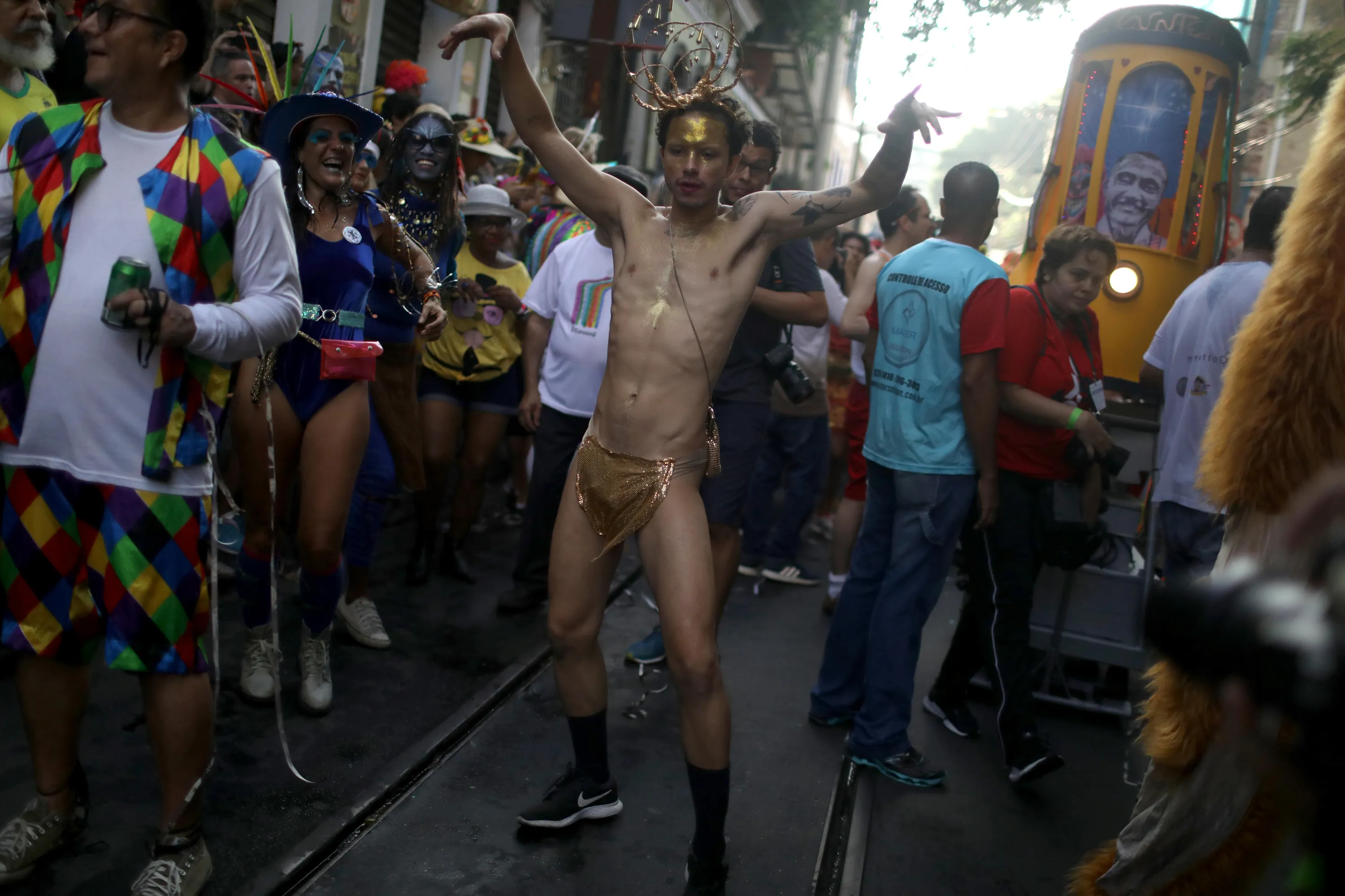 Revellers take part in the annual block party known as “Ceu na Terra” (Heaven on Earth), during carnival festivities in Rio de Janeiro, Brazil on February 15, 2020. (Photo by Pilar Olivares/Reuters)
