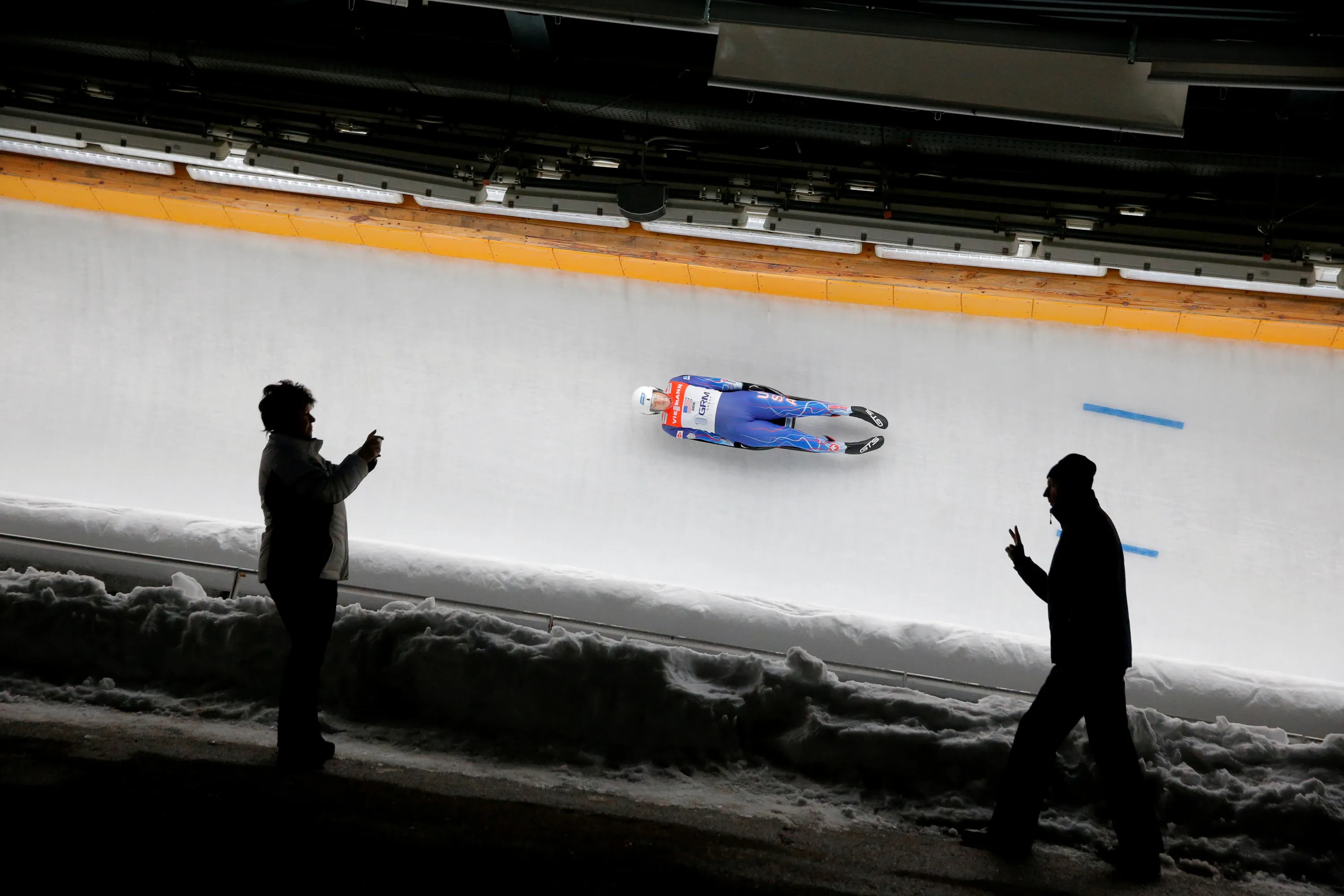 Team USA in action during their run during Team Relay competition at the FIL Luge World Championships in Sochi, Russia, 16 February 2020. (Photo by Vasily Fedosenko/Reuters)