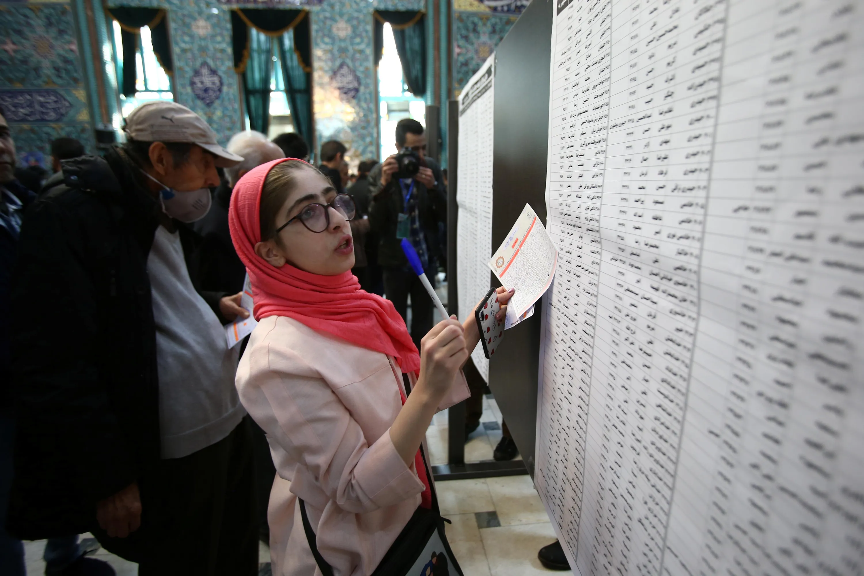 A woman selects her candidates during parliamentary elections at a polling station in Tehran, Iran on February 21, 2020. (Photo by Nazanin Tabatabaee/WANA (West Asia News Agency) via Reuters)
