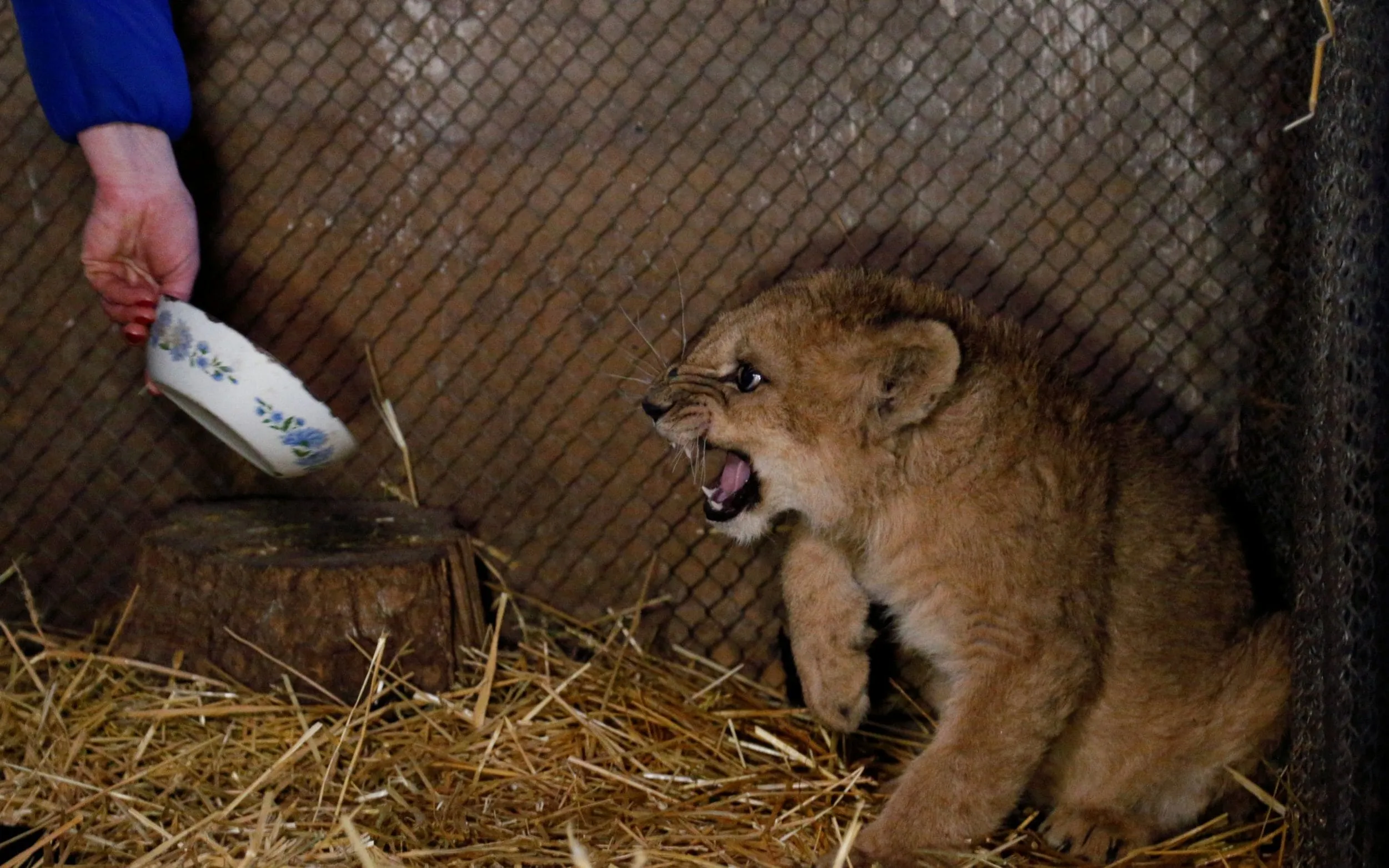 Leila, a two-month-old female lion cub, roars inside an enclosure at a zoo in the rebel-controlled village of Prydorozhne in Donetsk region, Ukraine on February 21, 2020. The lion cub was born in Donbass for the first time since the conflict between government forces and pro-Russian rebels started in 2014. Picture taken February 21, 2020. (Photo by Alexander Ermochenko/Reuters)