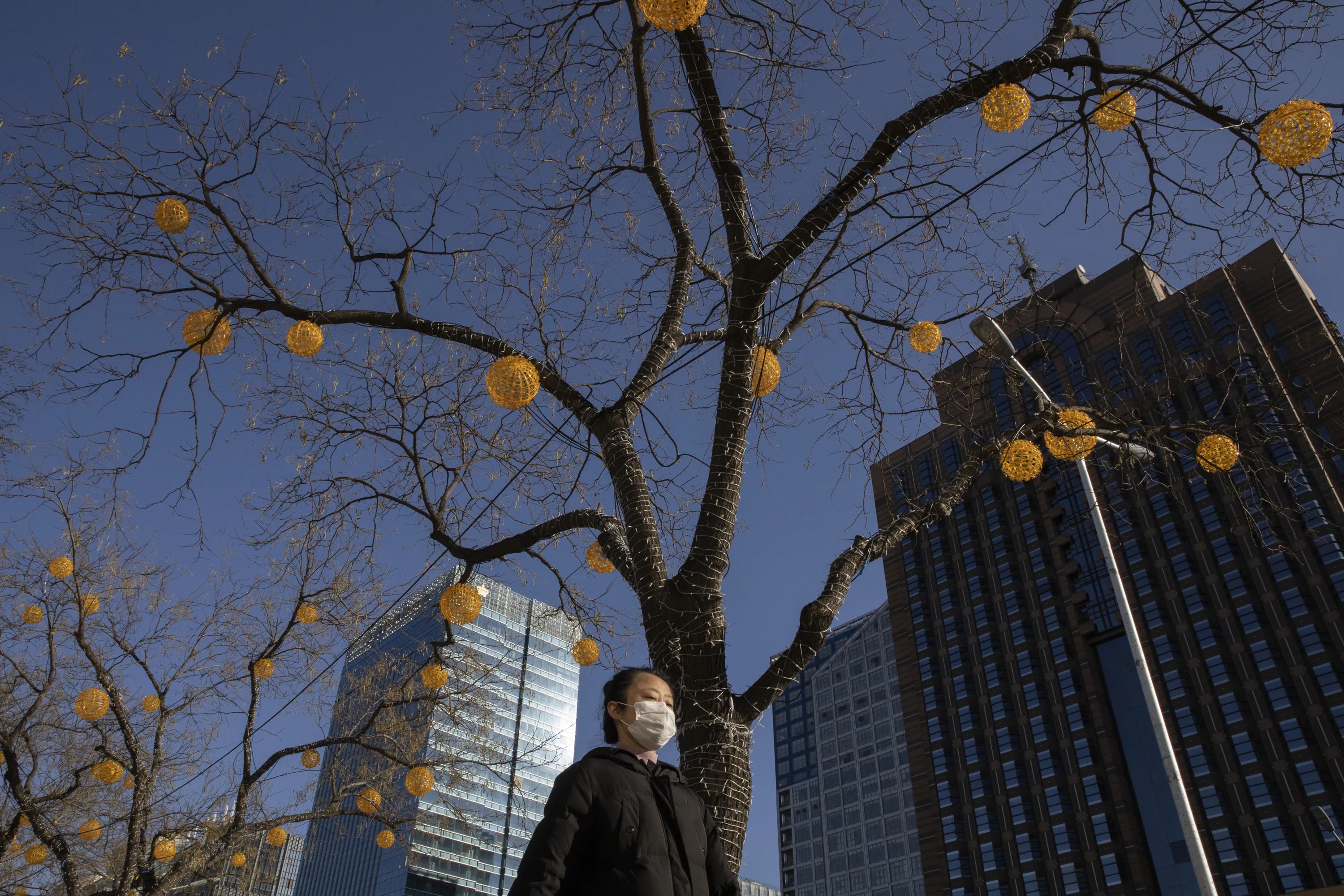 In this photo taken Saturday, February 22, 2020, a resident walks on the quiet street of Beijing, China. (Photo by Ng Han Guan/AP Photo)