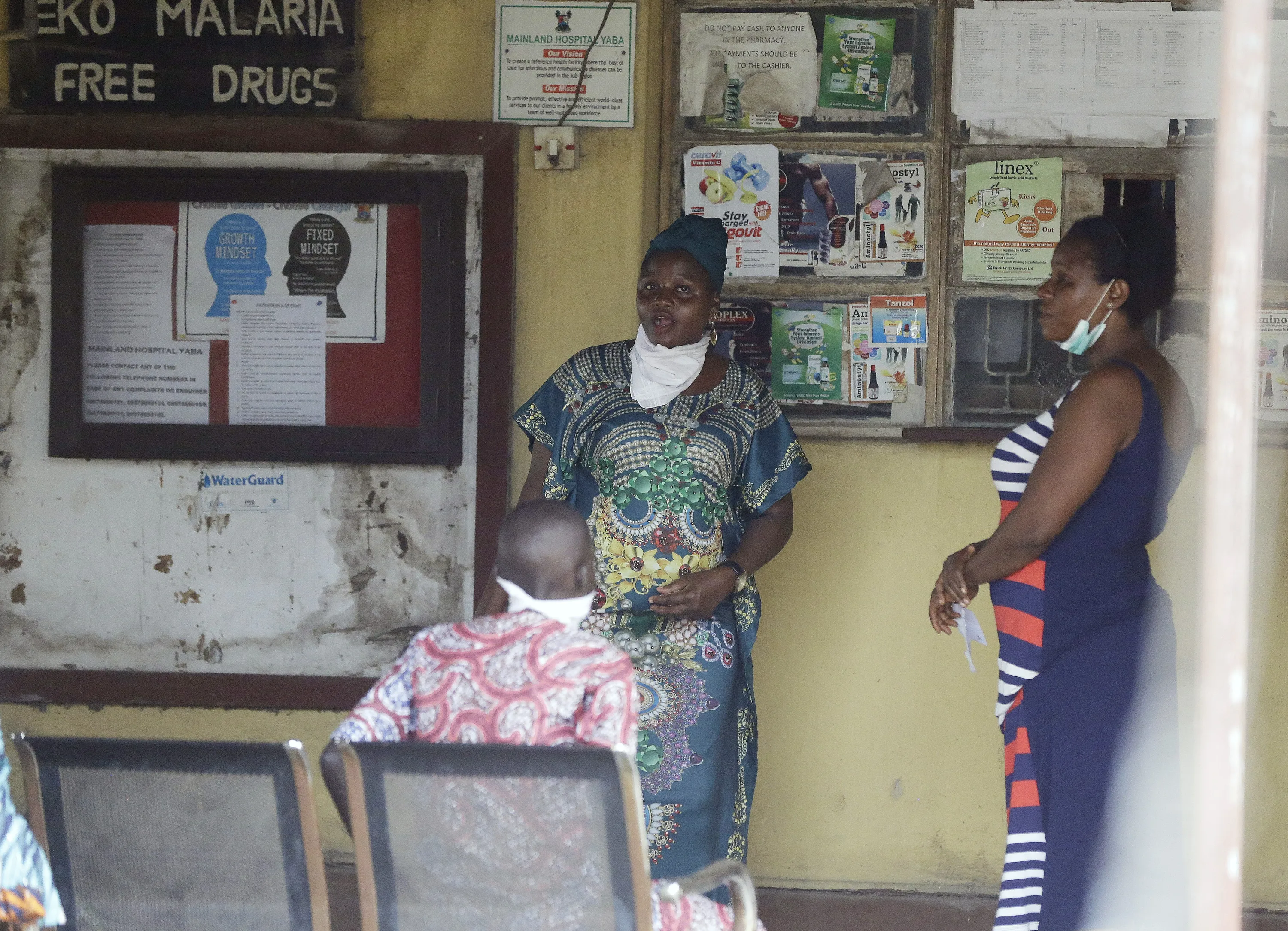 Women wearing face masks wait for drugs at the Yaba Mainland hospital where an Italian citizen – the country's first case of the COVID-19 virus – is being treated, in Lagos, Nigeria Friday, February 28, 2020. Nigeria's health authorities have reported the country's first case of a new coronavirus in Lagos, the first confirmed appearance of the disease in sub-Saharan Africa. (Photo by Sunday Alamba/AP Photo)