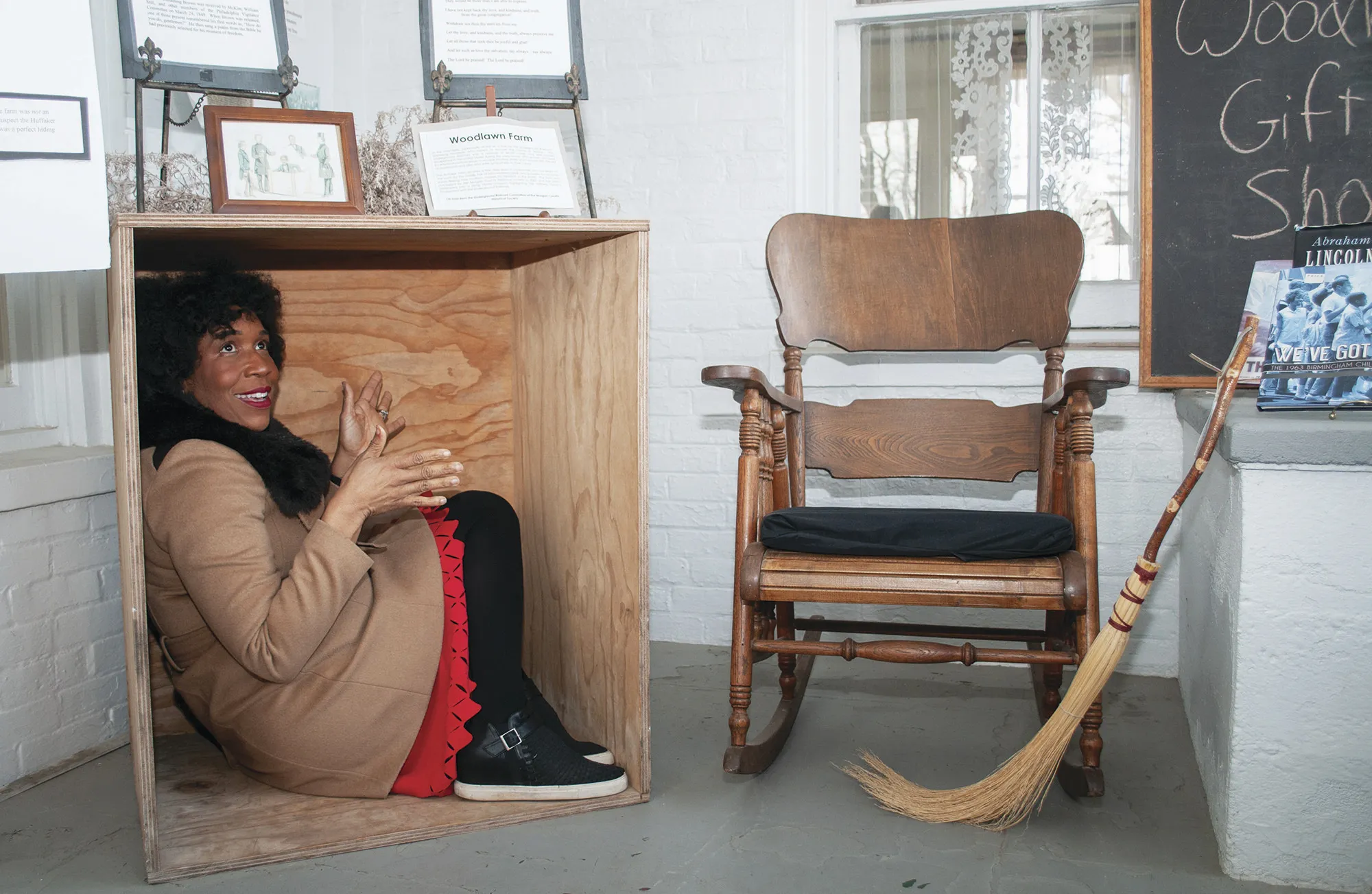 Illinois Lt. Gov. Juliana Stratton sits in box during her visit to Woodlawn Farm in Jacksonville, Ill., Wednesday, February 19, 2020. She said a 19th century Virginia slave who was a slave for 33 years mailed himself to Philadelphia, trying to escape slavery. Stratton's visit to the historic Underground Railroad site was one of several she is making statewide in observation of Black History Month. (Photo by Darren Iozia/Journal Courier via AP Photo)