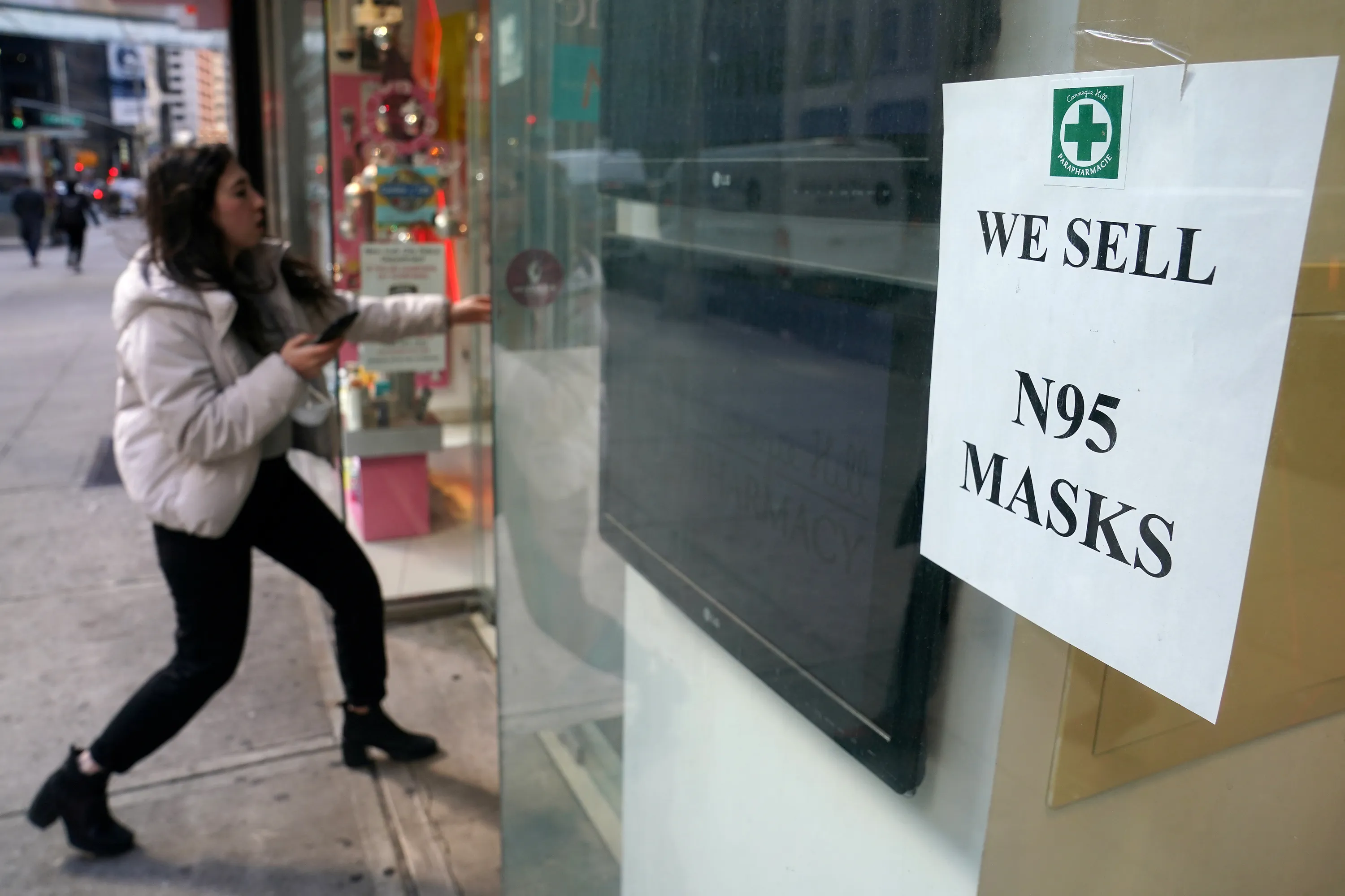 A woman walks into a pharmacy to purchase N95 face masks in advance of the potential coronavirus outbreak in the Manhattan borough of New York City, New York, U.S., February 27, 2020. (Photo by Carlo Allegri/Reuters)
