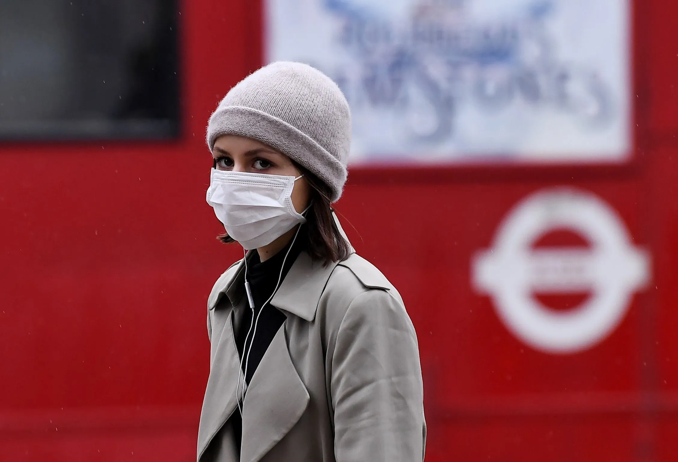 A woman wears a face mask in Oxford Circus, London, England during the global outbreak of the Coronavirus disease on February 28, 2020. (Photo by James Veysey/Rex Features/Shutterstock)