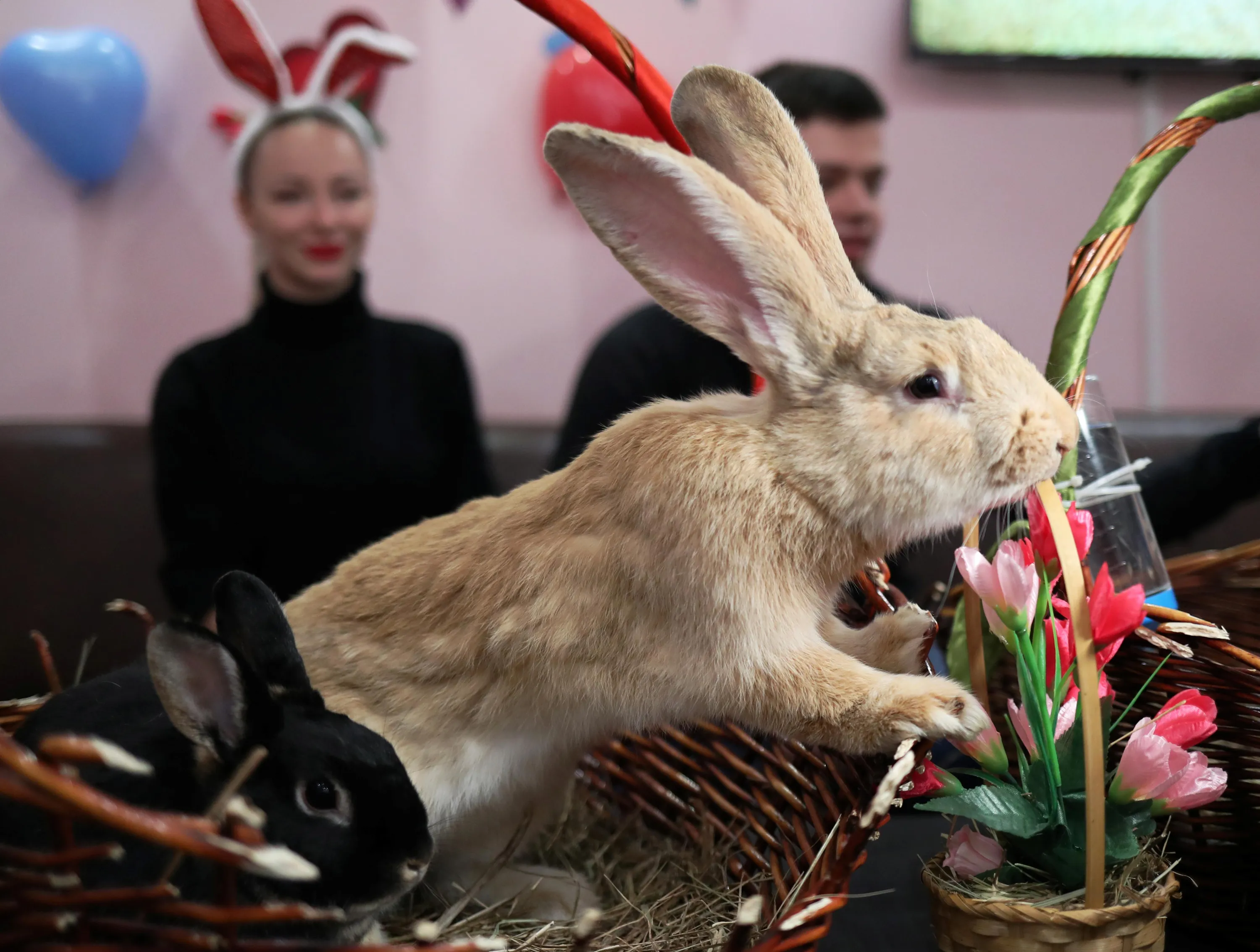 Rabbits sit in a basket at a rabbit cafe on Valentine's Day in Moscow, Russia on February 14, 2020. (Photo by Evgenia Novozhenina/Reuters)