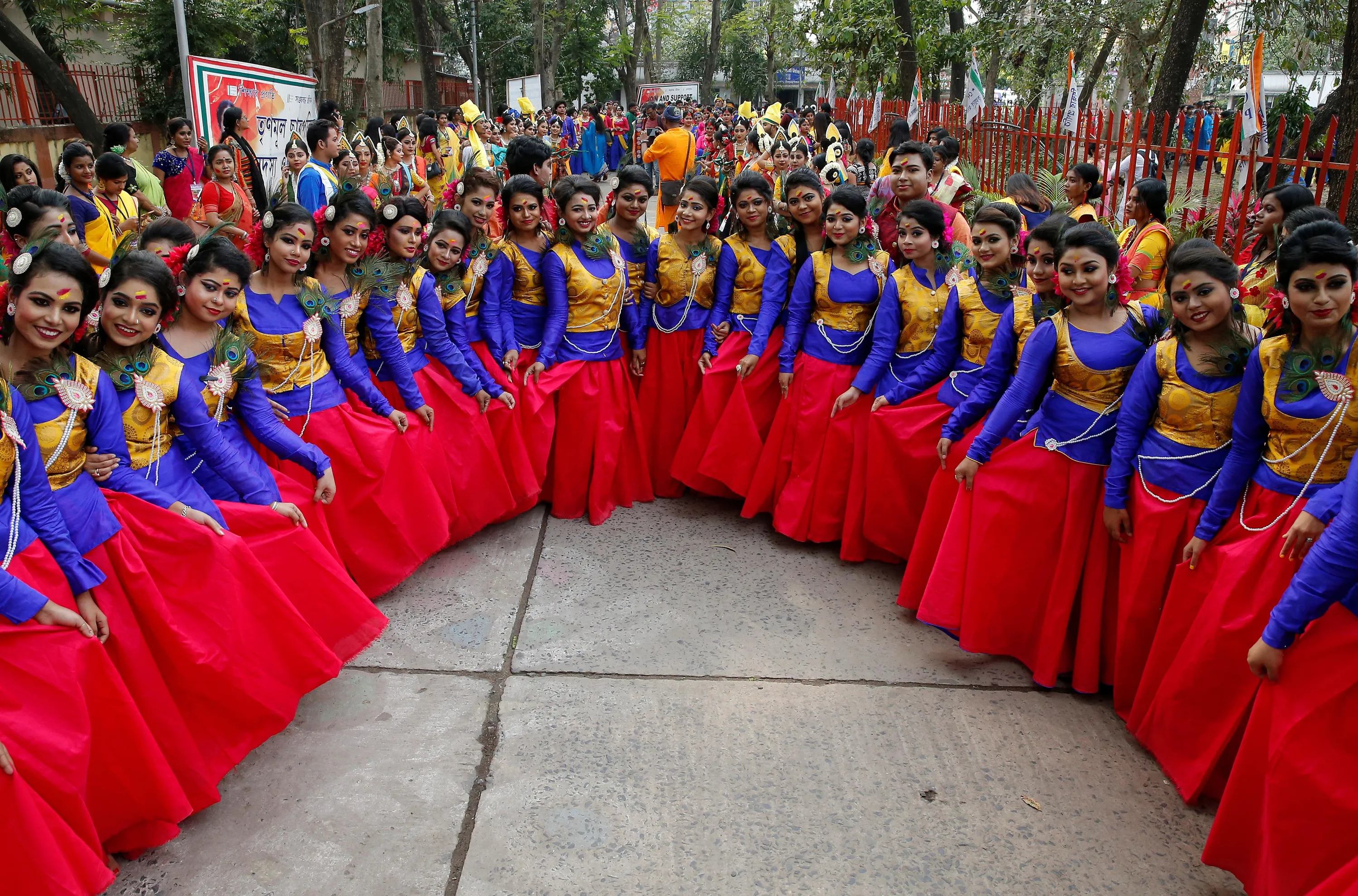 Students of Rabindra Bharati University perform during Holi celebrations inside the university campus in Kolkata, India, March 5, 2020. (Photo by Rupak De Chowdhuri/Reuters)