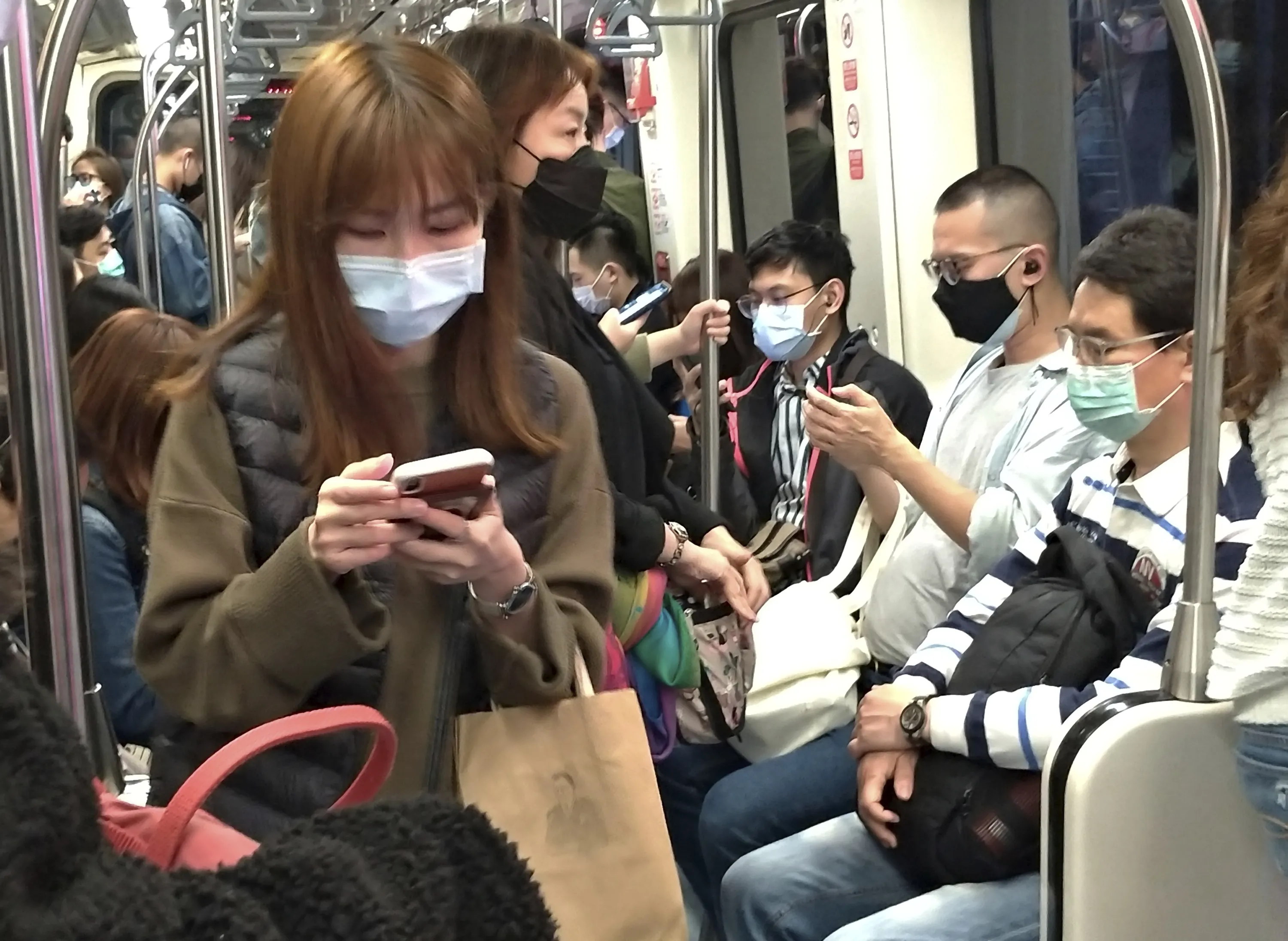 People wear face masks to protect against the spread of the coronavirus on MRT in Taipei, Taiwan, Saturday, March 7, 2020. (Photo by Chiang Ying-ying/AP Photo)