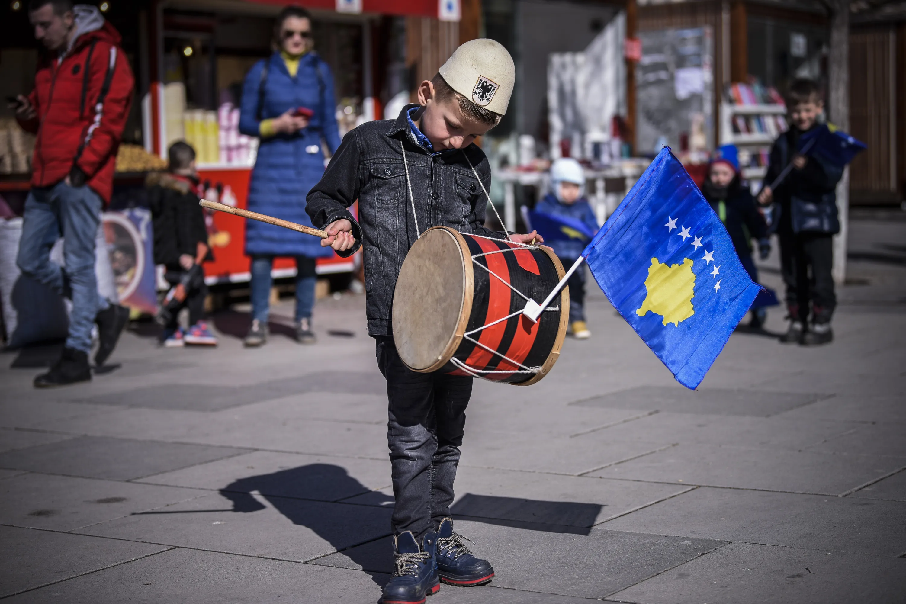 A Kosovo Albanian boy with a traditional hat plays drum in downtown Pristina on February 17, 2020, on the day of 12th anniversary of Kosovo's declaration of independence. (Photo by Armend Nimani/AFP Photo)