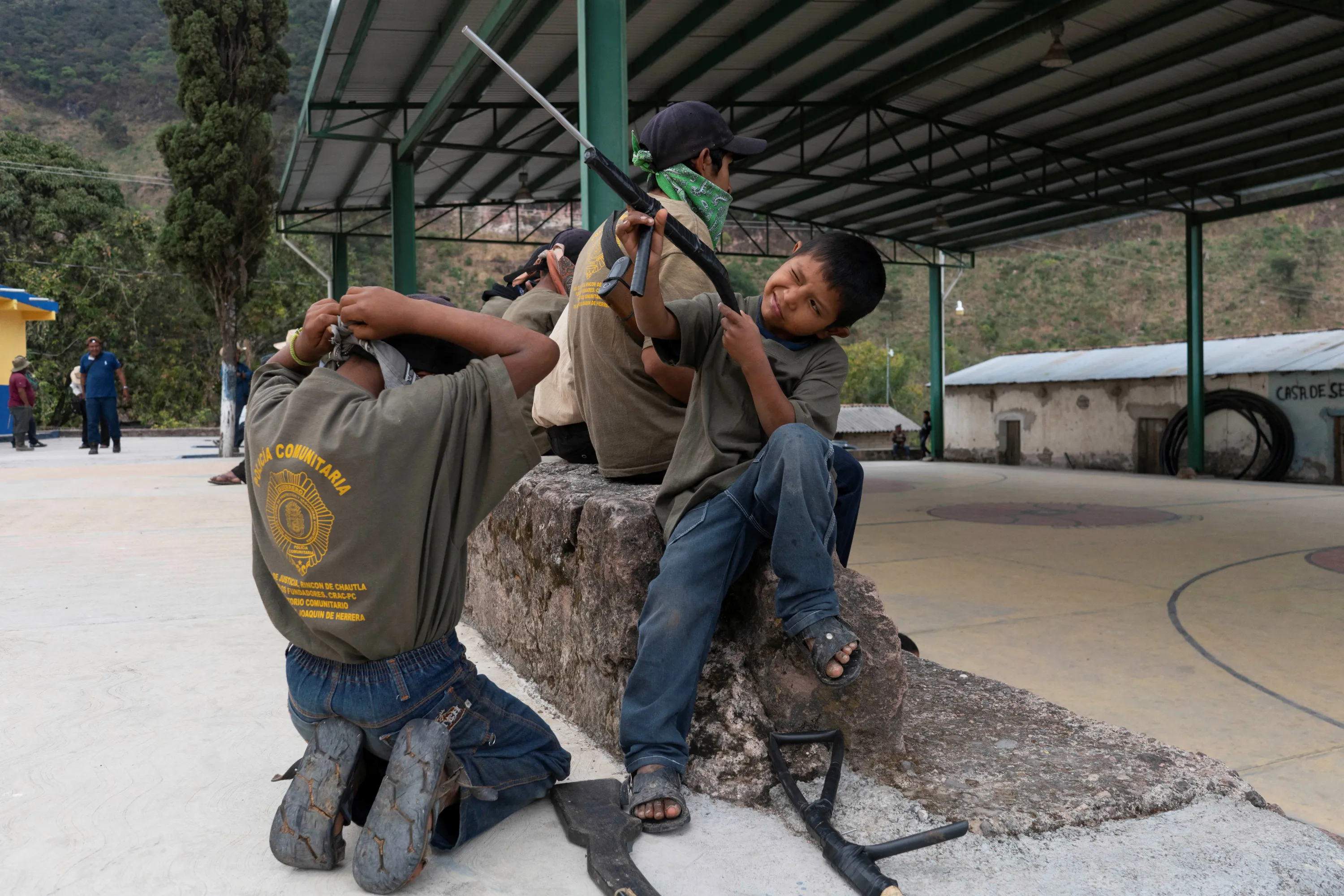 Children with toy and real guns, demonstrate newly learnt skills from military-style weapons training, to a Reuters journalist in Ayahualtempa, Mexico, February 3, 2020. (Photo by Alexandre Meneghini/Reuters)