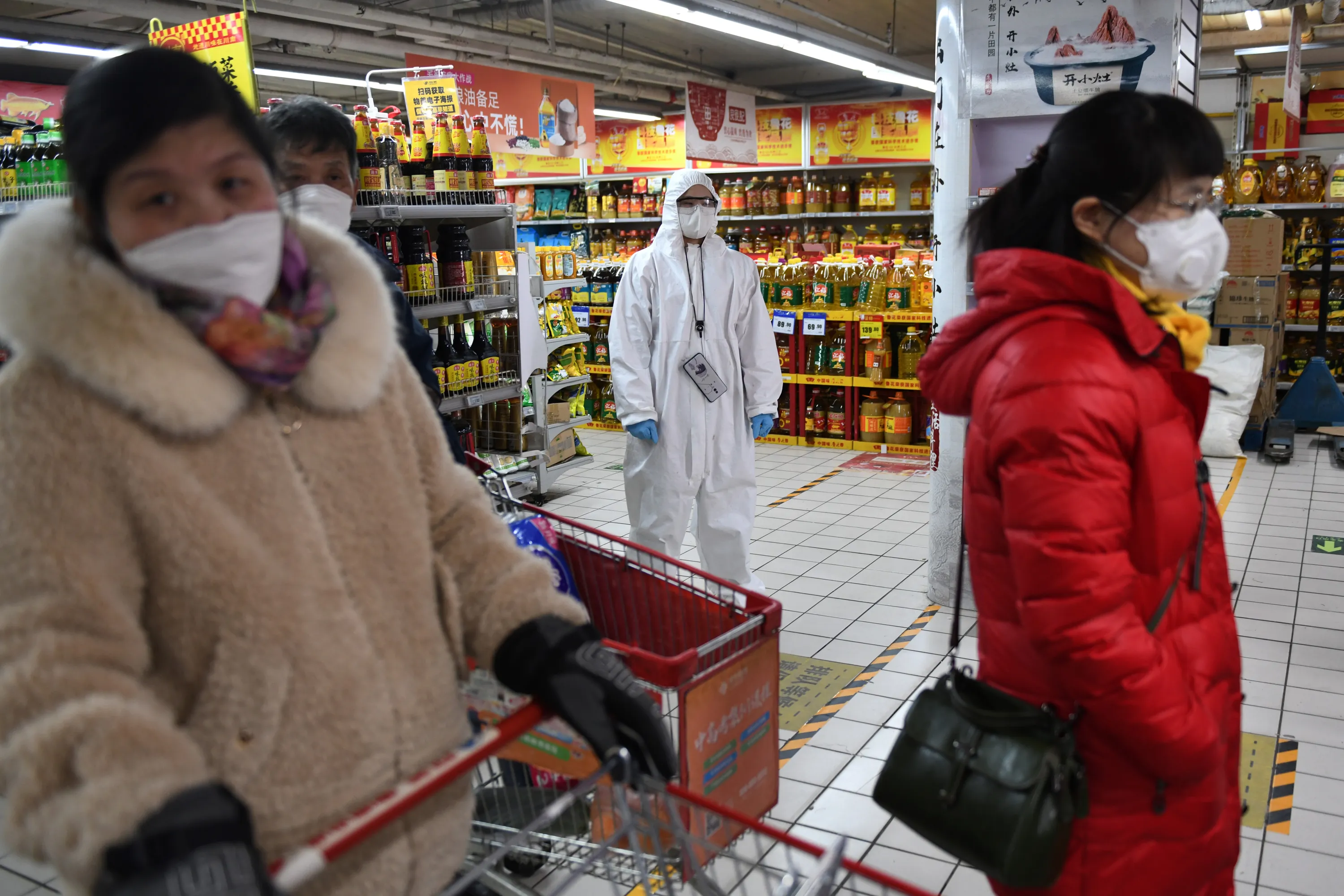A worker wears protective clothing as a preventive measure against the COVID-19 coronavirus as she watches over customers in a supermarket in Beijing on March 3, 2020. The world has entered uncharted territory in its battle against the deadly coronavirus, the UN health agency warned, as new infections dropped dramatically in China on March 3 but surged abroad with the US death toll rising to six. The world has entered uncharted territory in its battle against the deadly coronavirus, the UN health agency warned, as new infections dropped dramatically in China on March 3 but surged abroad with the US death toll rising to six. (Photo by Greg Baker/AFP Photo)