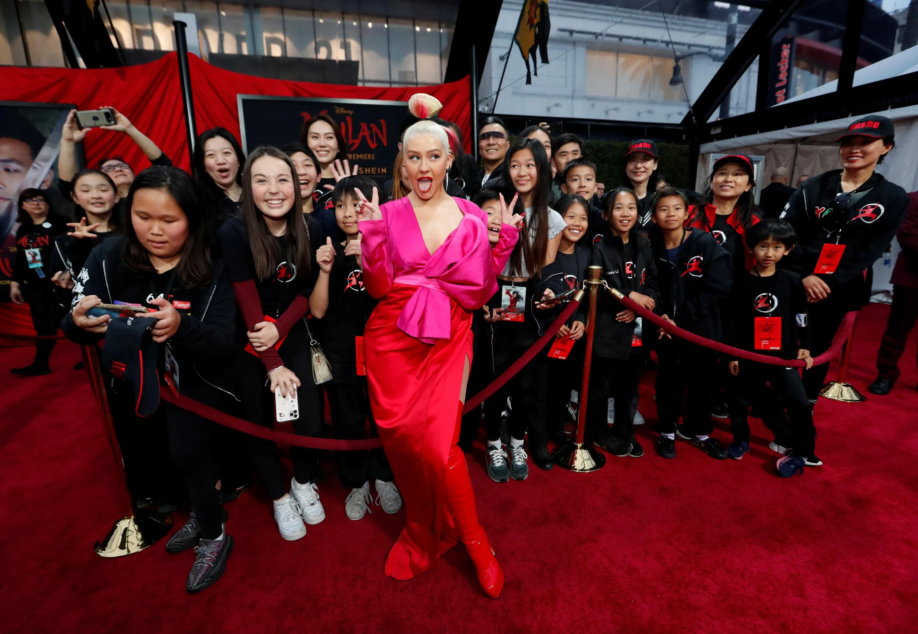 Soundtrack artist Christina Aguilera poses with fans at the premiere for the film “Mulan” in Los Angeles, California, U.S., March 9, 2020. (Photo by Mario Anzuoni/Reuters)