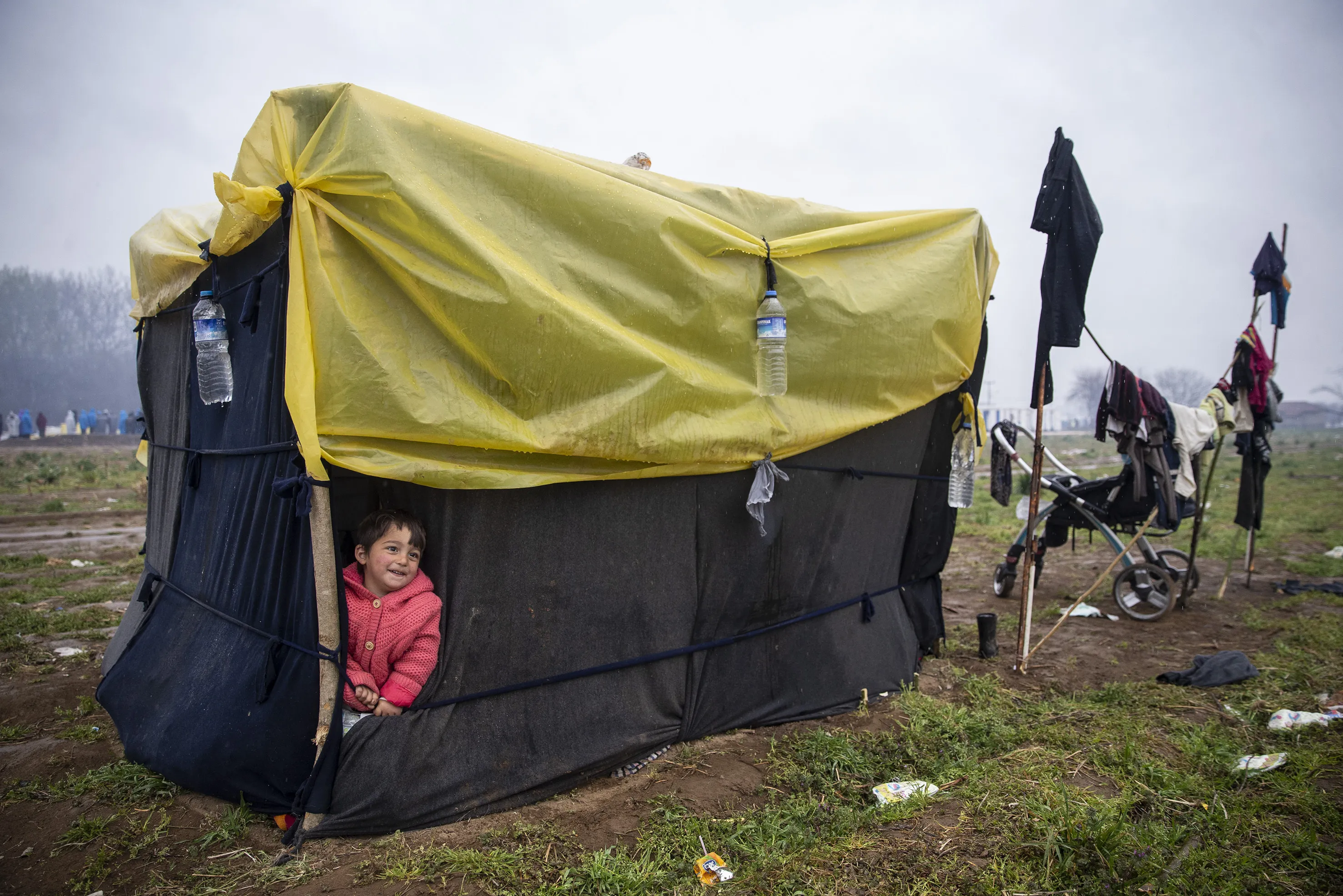 Asylum seekers, arrived in Edirne mostly from Istanbul and many other Turkish cities, are seen waiting at woodland near buffer zone located between the Kastanies and the Pazarkule border gates, hoping that Greece will open the border gate, on March 15, 2020 in Turkey's northwestern Edirne province. More than thousands of asylum seekers' struggle to reach Europe continues on the 17th day. (Photo by Gokhan Balci/Anadolu Agency via Getty Images)