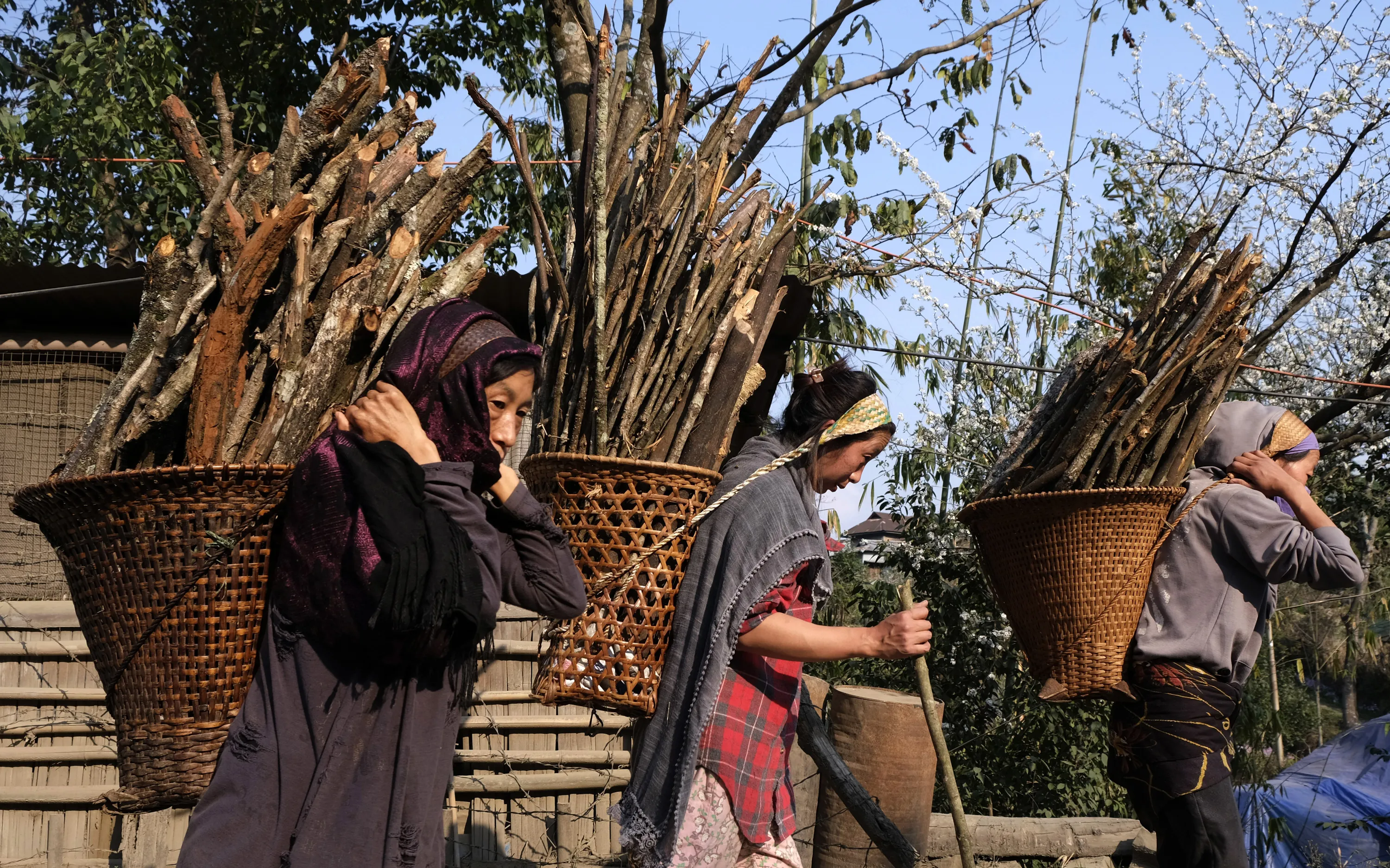 Naga women carry firewood as they walk home from a day in the field near Viswema village, in the northeastern Indian state of Nagaland, Friday, March 13, 2020. Nagas are an indigenous people living in several northeastern Indian states and across the border in Myanmar. (Photo by Yirmiyan Arthur/AP Photo)