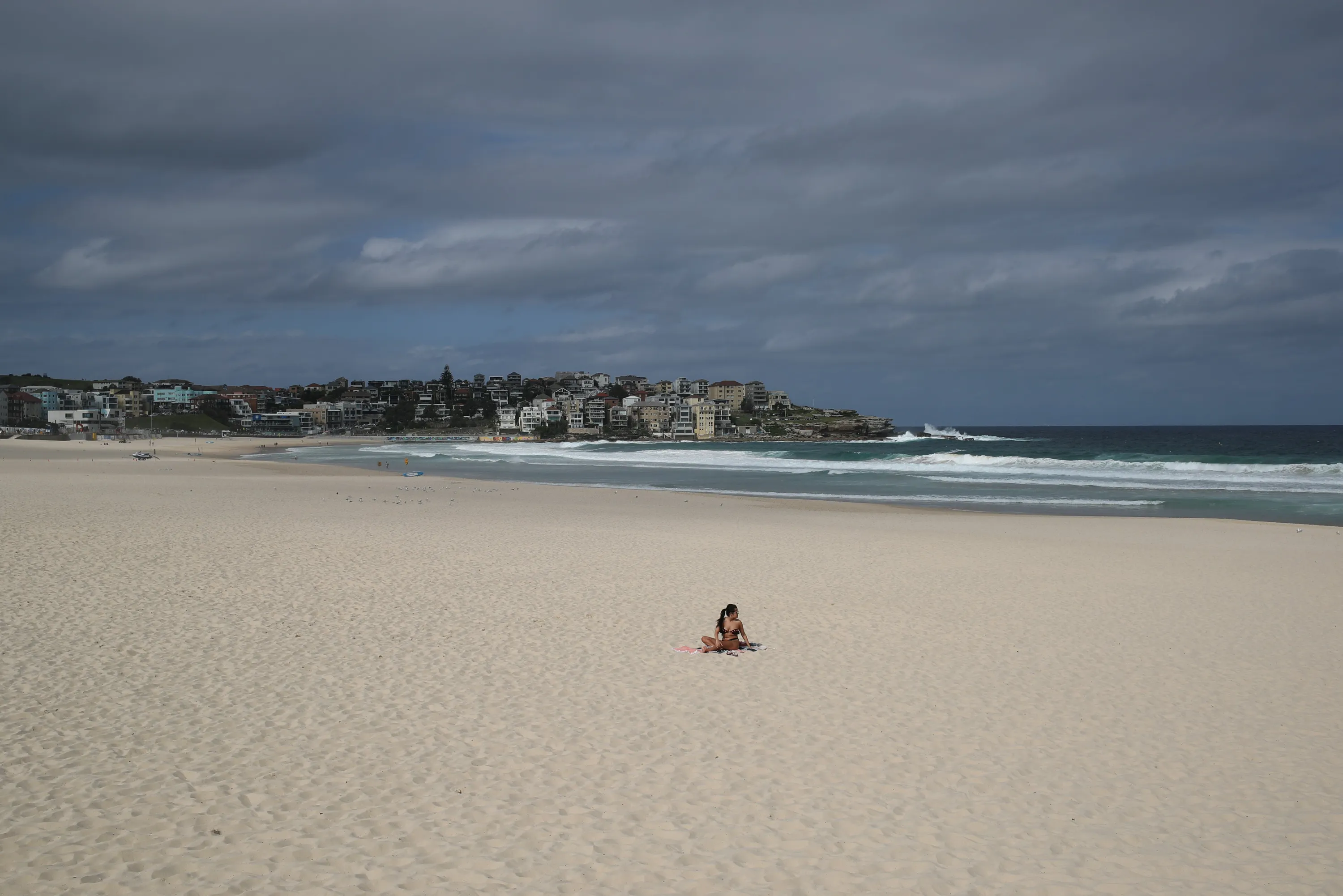 A single sunbather remains following the closure of Bondi Beach after thousands of peopled flocked there in recent days, defying social distancing orders to prevent the spread of the coronavirus disease (COVID-19), in Sydney, Australia, March 21, 2020. (Photo by Loren Elliott/Reuters)