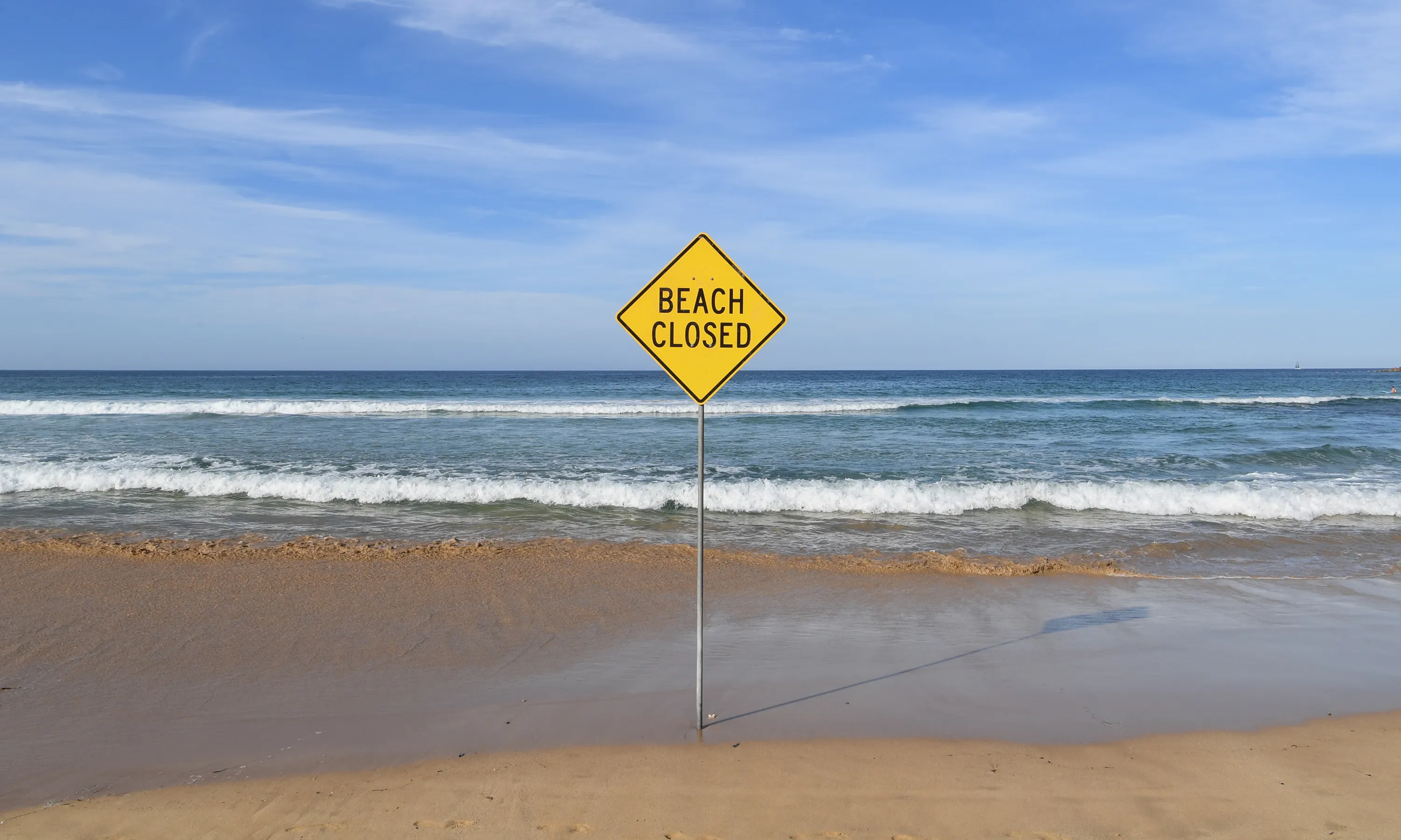A beach closed sign on Manly Beach on March 22, 2020 in Sydney, Australia. Prime Minister Scott Morrison on Friday introduced further measures to help stop the spread of COVID-19, implementing news rules limiting the number of people inside a venue to one every 4 square metres. Non-essential gatherings of 100 or more people indoors are banned, along with outdoor gatherings of more than 500 people in a bid to contain the spread of COVID-19. A travel ban on all visitors who are not Australian citizens or residents or their direct relations arriving into the country is now in place. There are now 1,286 confirmed cases of COVID-19 In Australia and the death toll now stands at 7. (Photo by James D. Morgan/Getty Images)