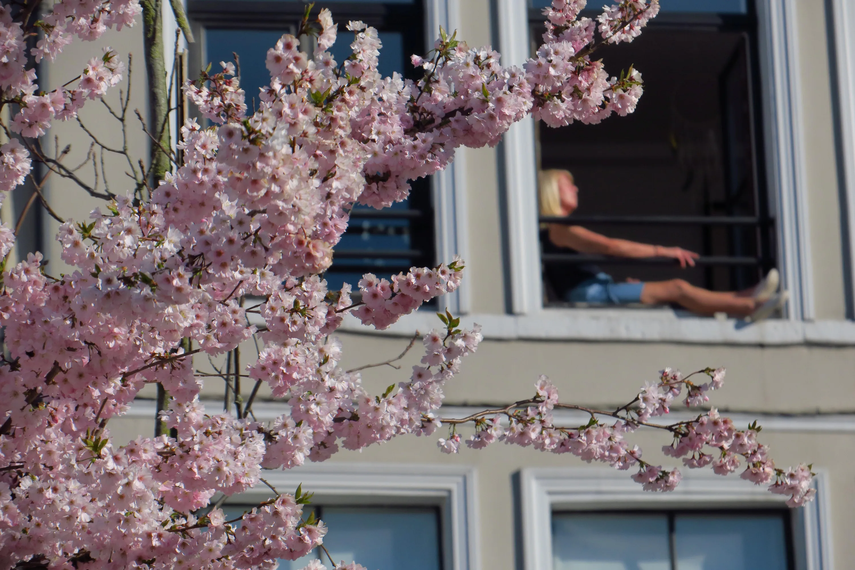 A woman reading a book at her window appears behind a blooming Japanese cherry tree in Lille, as a lockdown is imposed to slow the rate of the coronavirus disease (COVID-19) spread in France, March 24, 2020. (Photo by Pascal Rossignol/Reuters)