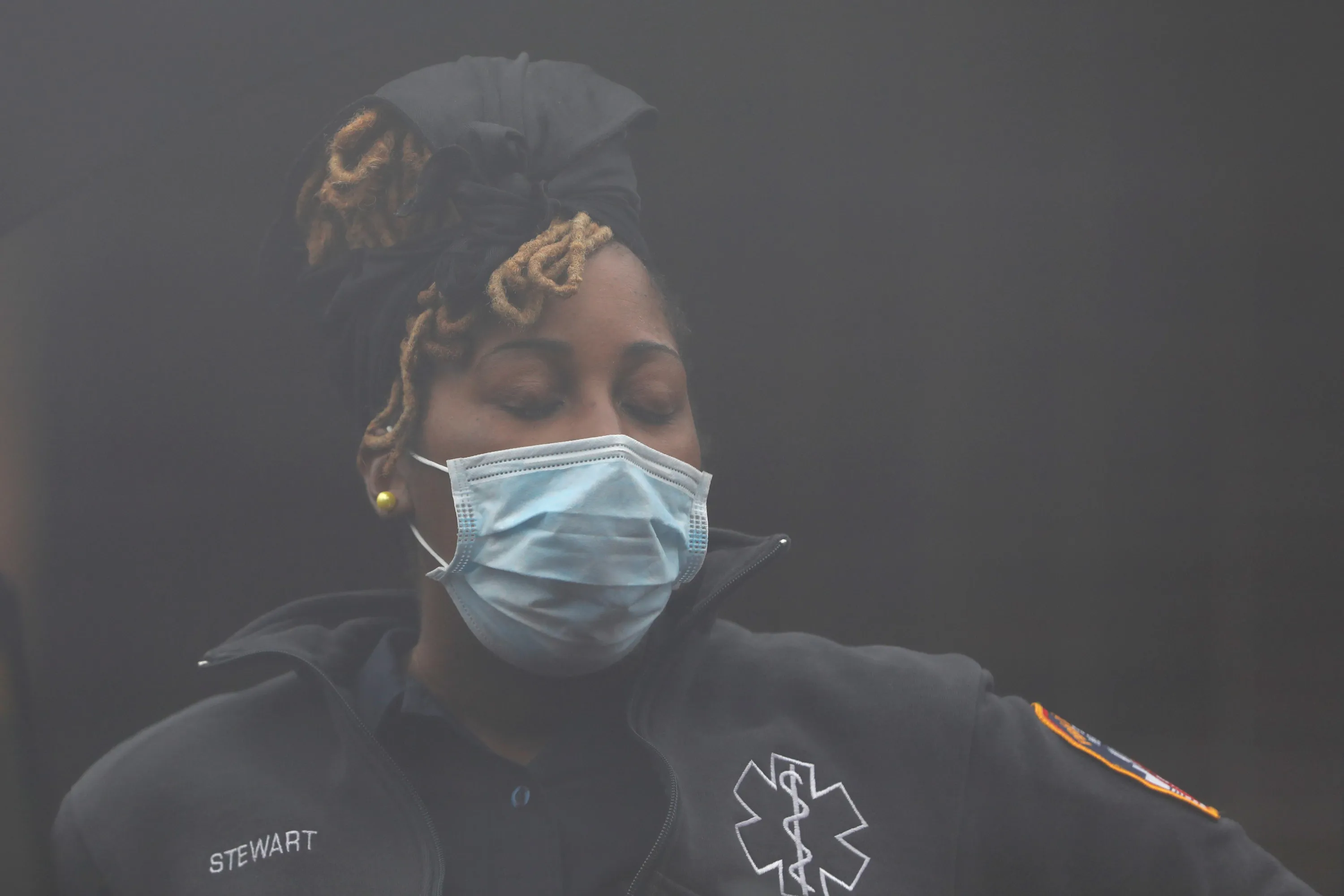An E.M.T. is seen through glass at the Brooklyn Hospital Center, which has erected a tent to test for the coronavirus disease (COVID-19) in Brooklyn, New York City, U.S., March 19, 2020. (Photo by Andrew Kelly/Reuters)