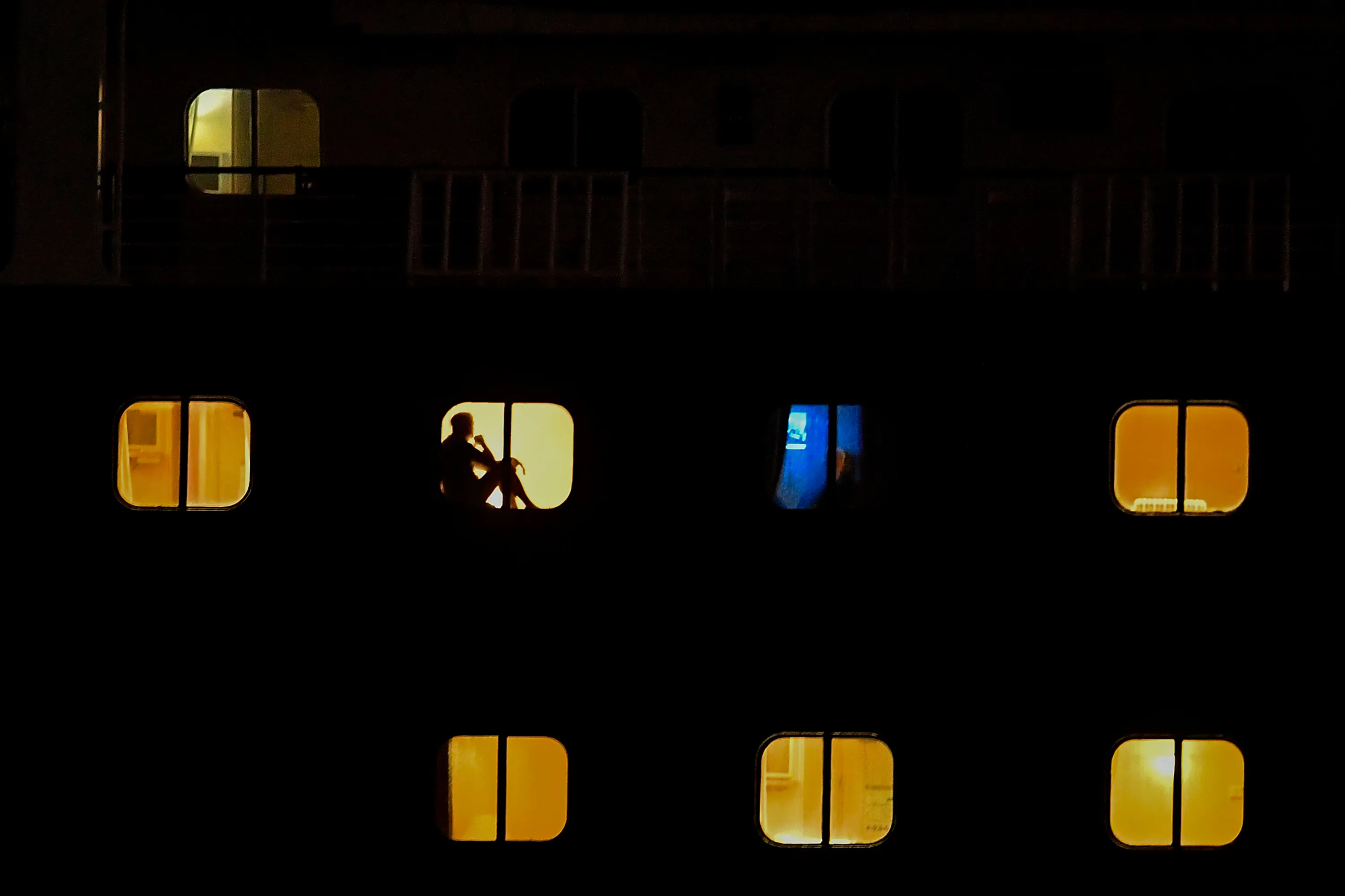 Passangers of Holland America's cruise ship Zaandam are seen as the ship navigates through the Panama Canal in Panama City, on March 29, 2020. Passengers on a virus-stricken cruise liner stranded off Panama in Central America were told Sunday the company was still searching for a port which will allow them to disembark, even as they pleaded for help. (Photo by Luis Acosta/AFP Photo)