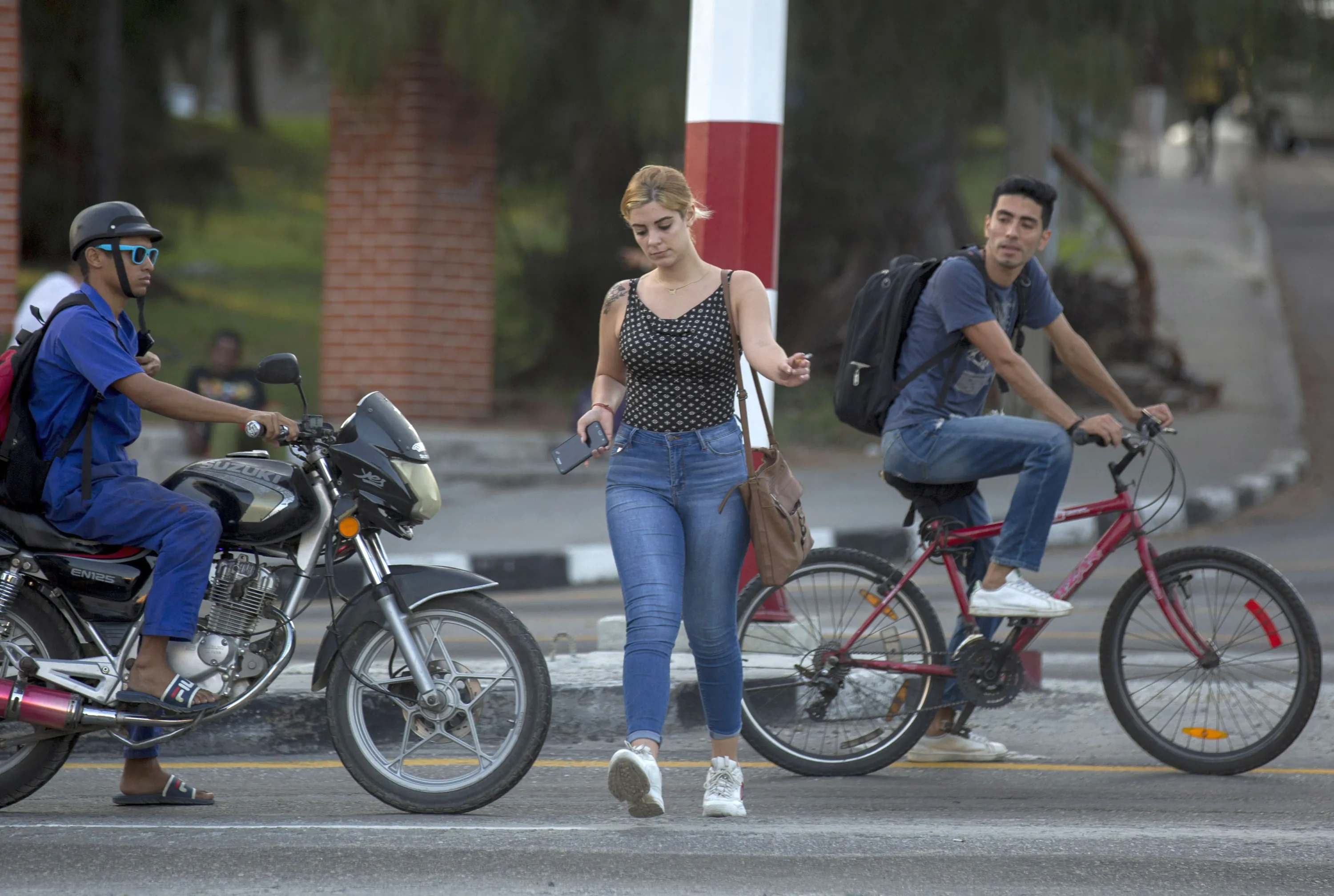 In this December 9, 2019 photo, a woman crosses a street as a young man on a bicycle stares at her in Havana, Cuba. For 60 years, Cuba's communist government has monopolized virtually every aspect of life on the island, but this year one aspect of that state monopoly has begun to loosen, and as 2019 comes to a close one of the most important of those new civil society causes is women's rights. (Photo by Ismael Francisco/AP Photo)