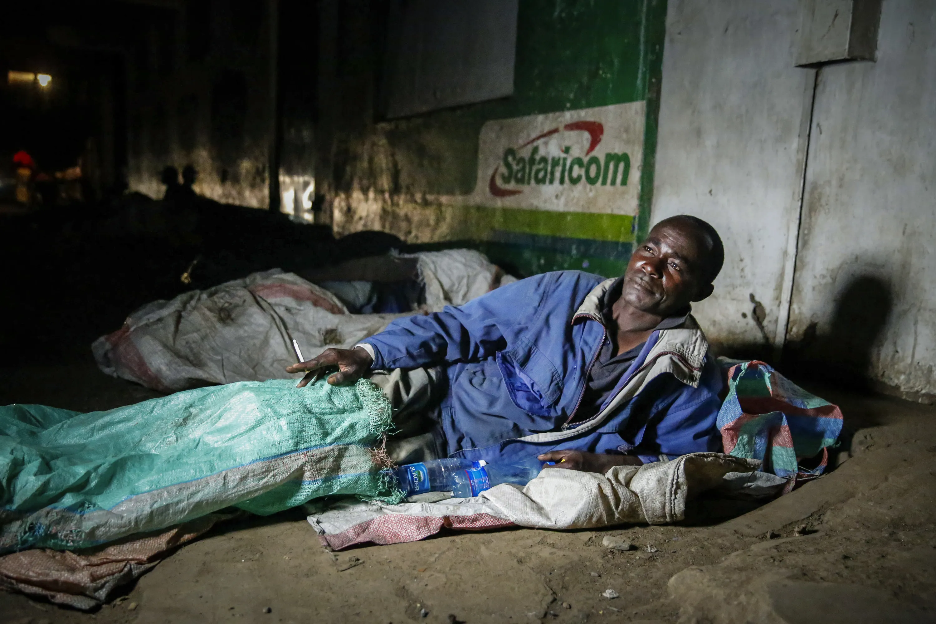 In this photo taken Tuesday, March 24, 2020, a homeless person prepares to sleep next to others on the side of a road in the Mathare slum, or informal settlement, of Nairobi, Kenya. Many slum residents say staying at home or social-distancing is impossible for those who live hand to mouth, receiving daily wages for informal work with no food or economic assistance from the government, as is maintaining sanitation where a pit latrine can be shared by over 50 people. The new coronavirus causes mild or moderate symptoms for most people, but for some, especially older adults and people with existing health problems, it can cause more severe illness or death. (Photo by Brian Inganga/AP Photo)