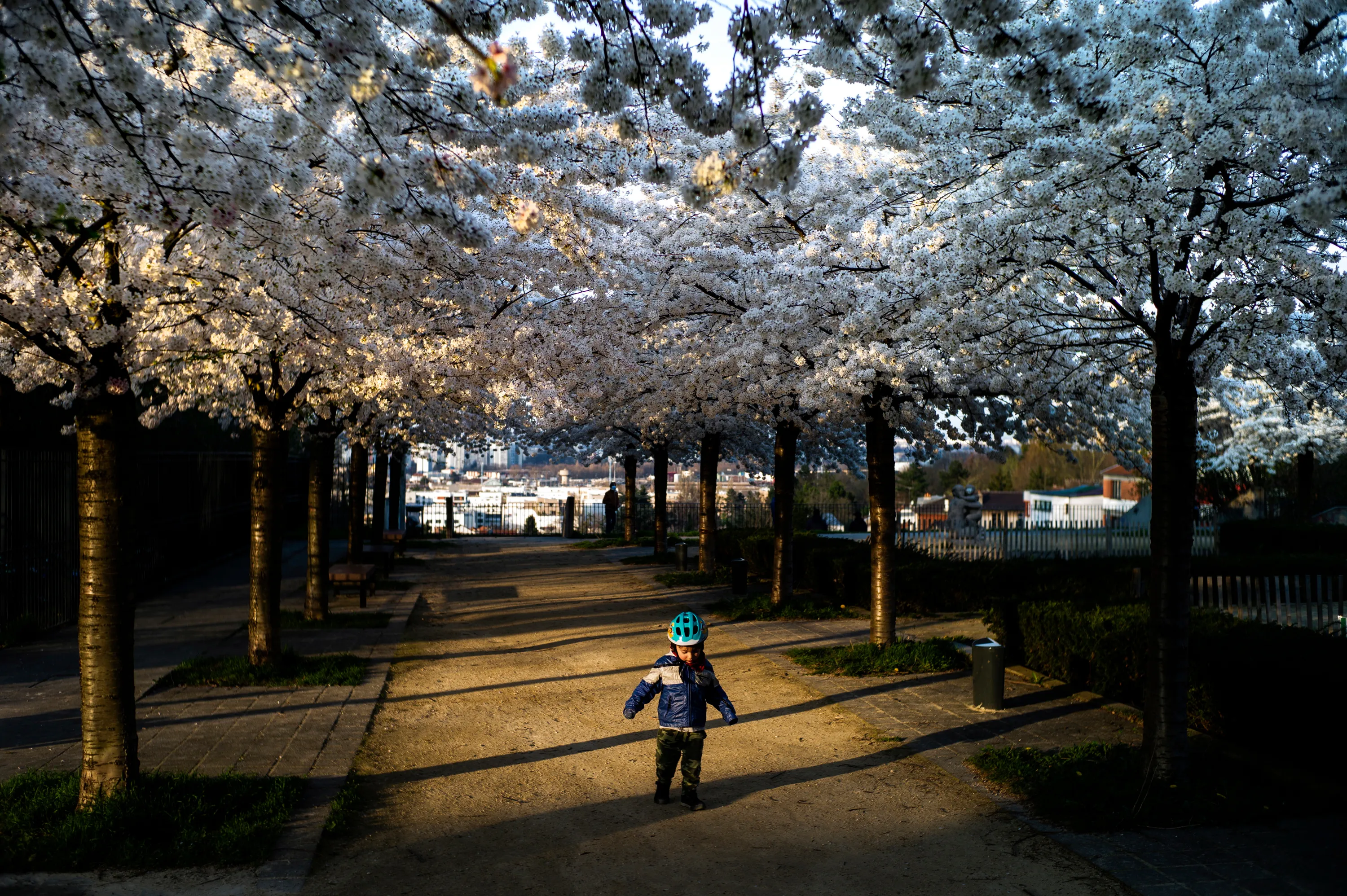 A child plays in a park with flowering cherry trees in Romainville, France, 18 March 2020. France is under lockdown in an attempt to stop the widespread of the SARS-CoV-2 coronavirus causing the Covid-19 disease. (Photo by Yoan Valat/EPA/EFE)