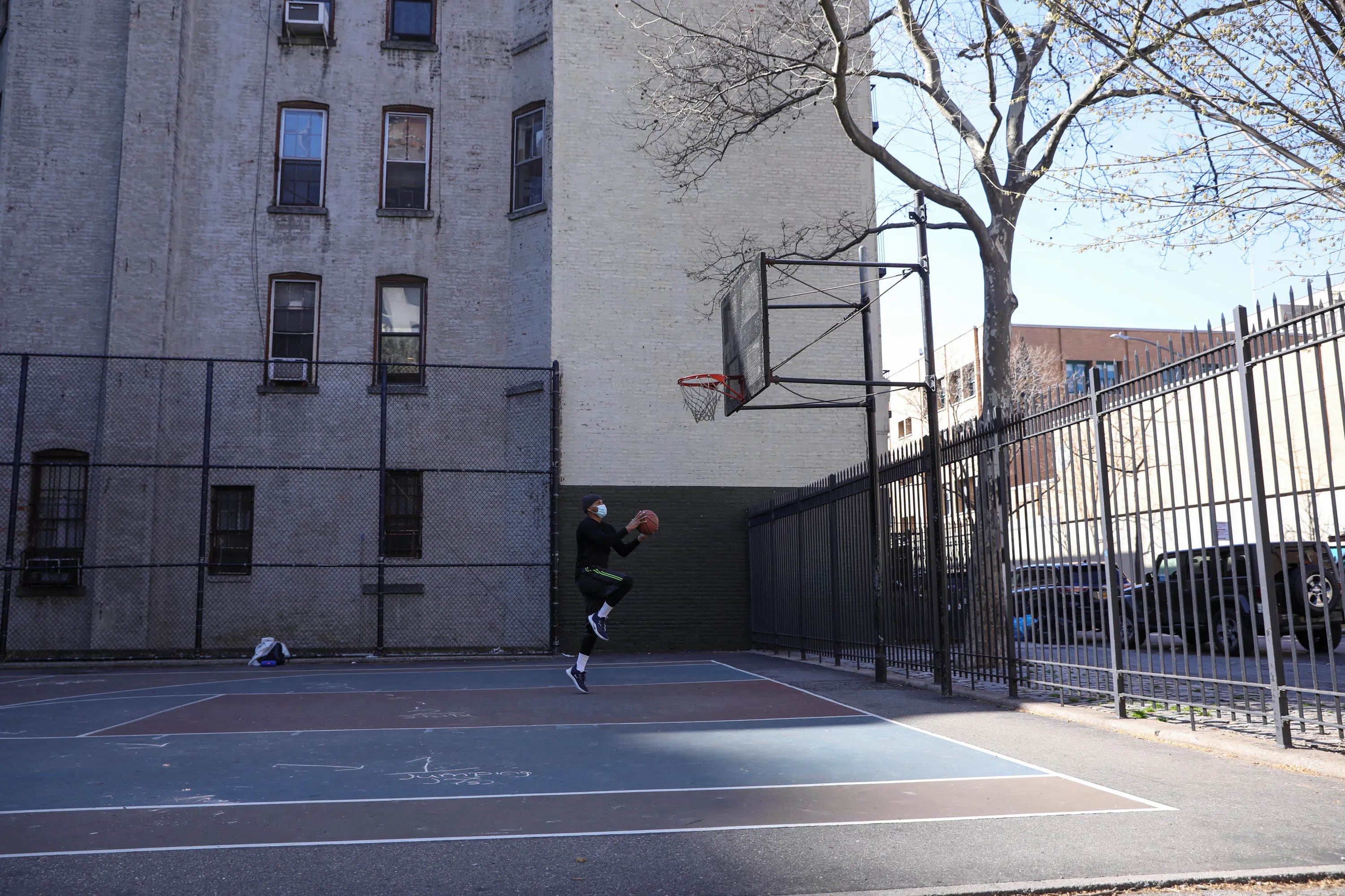 Jovan Figueroa plays basketball alone and wears a protective face mask as a preventative measure during the outbreak of the coronavirus disease (COVID-19) in Manhattan, New York City, U.S., March 26, 2020. (Photo by Caitlin Ochs/Reuters)