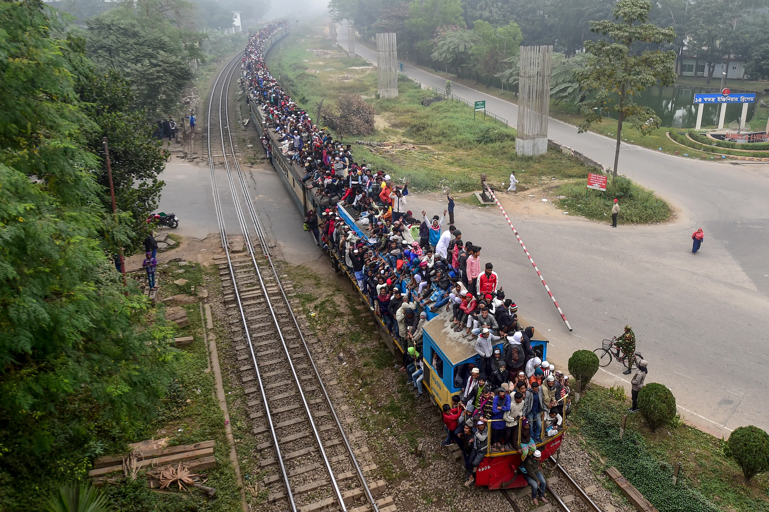 Muslim devotees leave after taking part in the Akheri Munajat, or final prayers, during the annual Muslim gathering “Biswa Ijtema” in Tongi, some 30 kms north of Dhaka on January 12, 2020. (Photo by Munir Uz Zaman/AFP Photo)