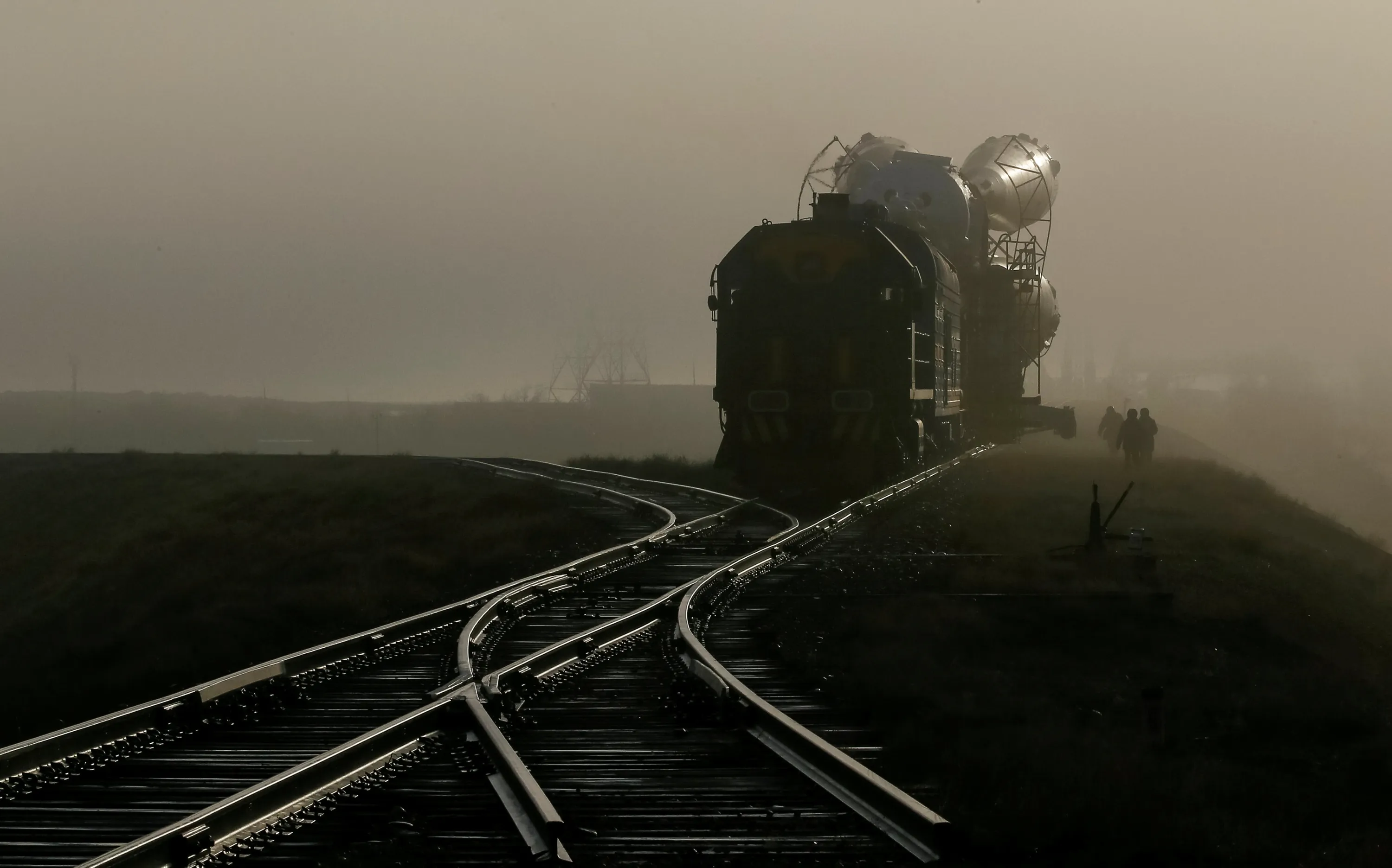 Security personnel escort the Soyuz MS-08 spacecraft for the next International Space Station (ISS) crew, consisting of astronauts Drew Feustel and Ricky Arnold of the U.S and crewmate Oleg Artemyev of Russia, as it is transported from an assembling hangar to the launchpad ahead of its upcoming launch, at the Baikonur Cosmodrome, Kazakhstan March 19, 2018. (Photo by Shamil Zhumatov/Reuters)