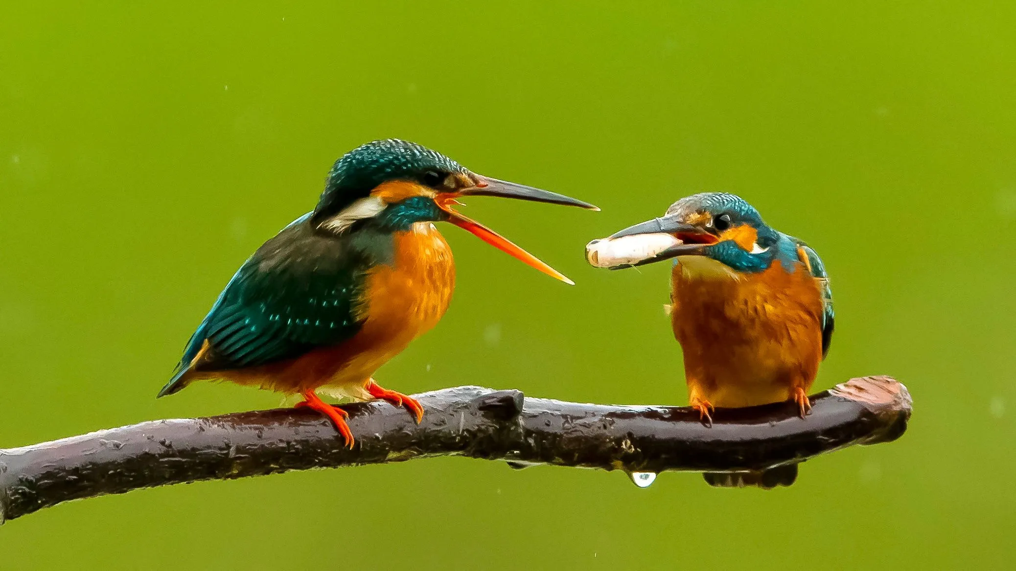 Two kingfishers are seen on a branch in Xindian Town, Fuzhou City, southeast China's Fujian Province on April 11, 2020. (Photo by Xinhua News Agency/Rex Features/Shutterstock)