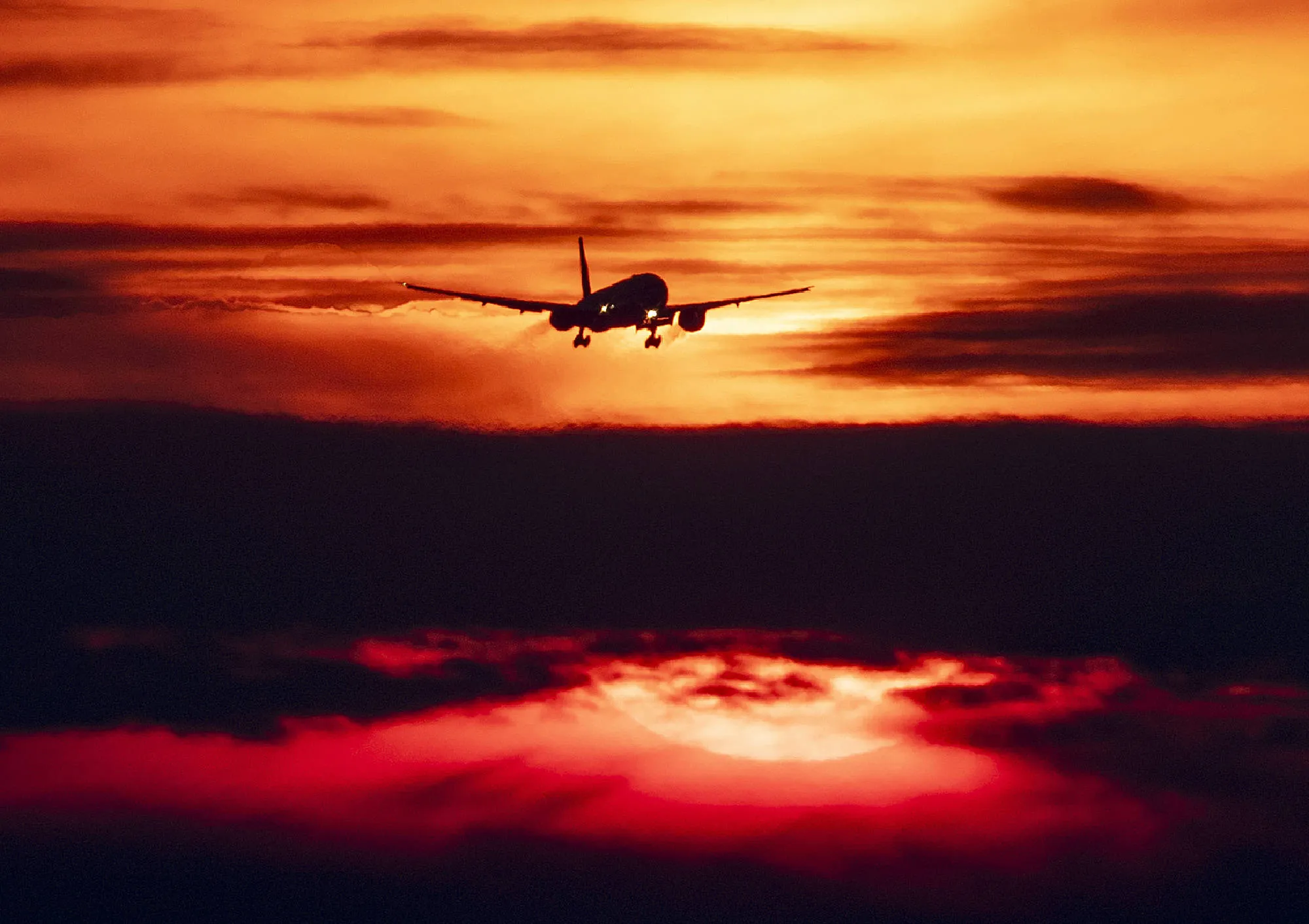 An aircraft approaches the international airport in Frankfurt, Germany, as the sun rises on Wednesday, August 28, 2019. (Photo by Michael Probst/AP Photo)